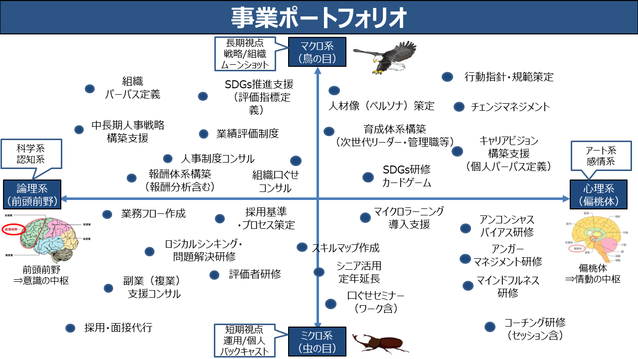人事制度構築、各種講演・研修講師、SDGsファシ リテーター、ワークショップなど300社に課題解決を実施。