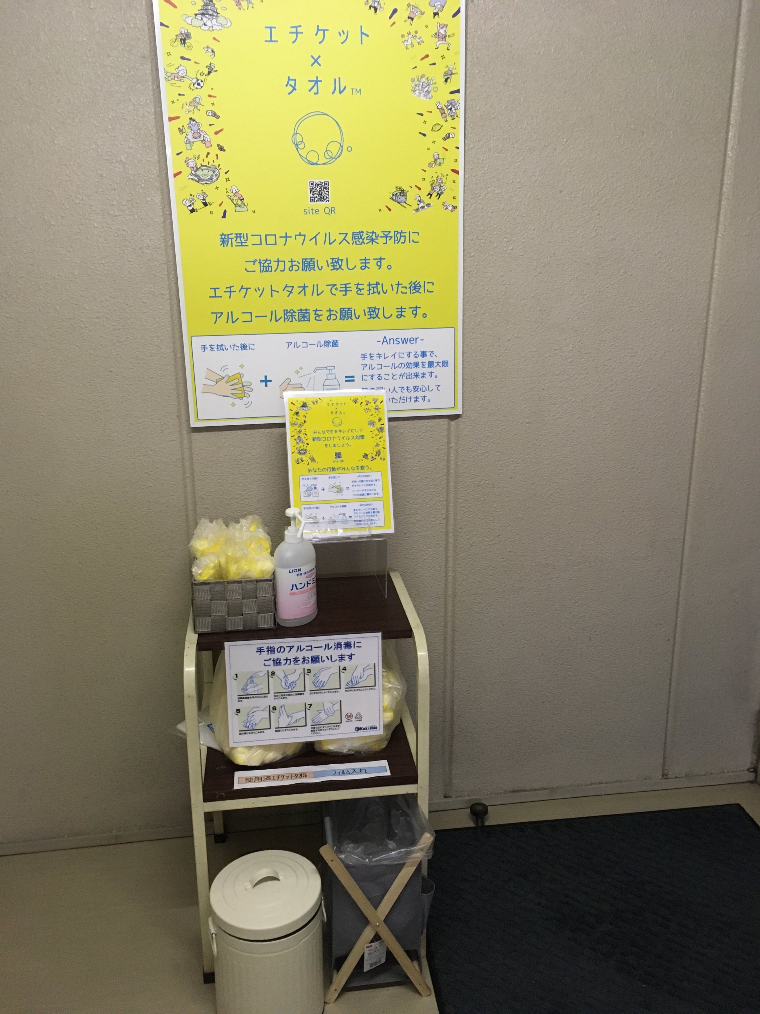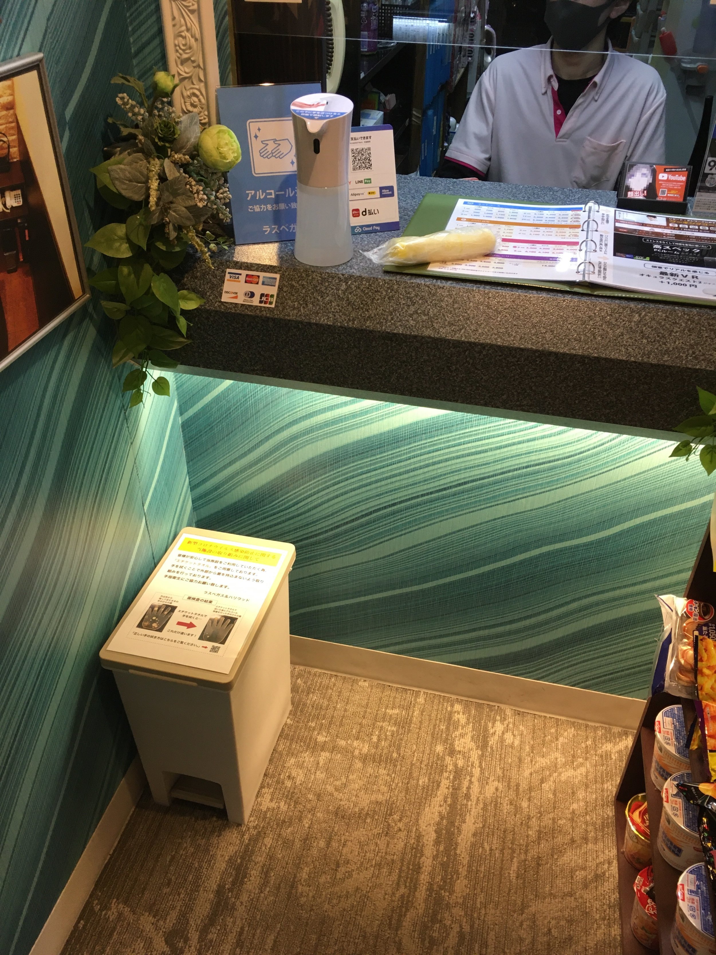 ネットカフェ、ラスカフェさんではこのように受付でまずはエチケットタオル+アルコールで手を拭いてもらってからのご案内となっています。