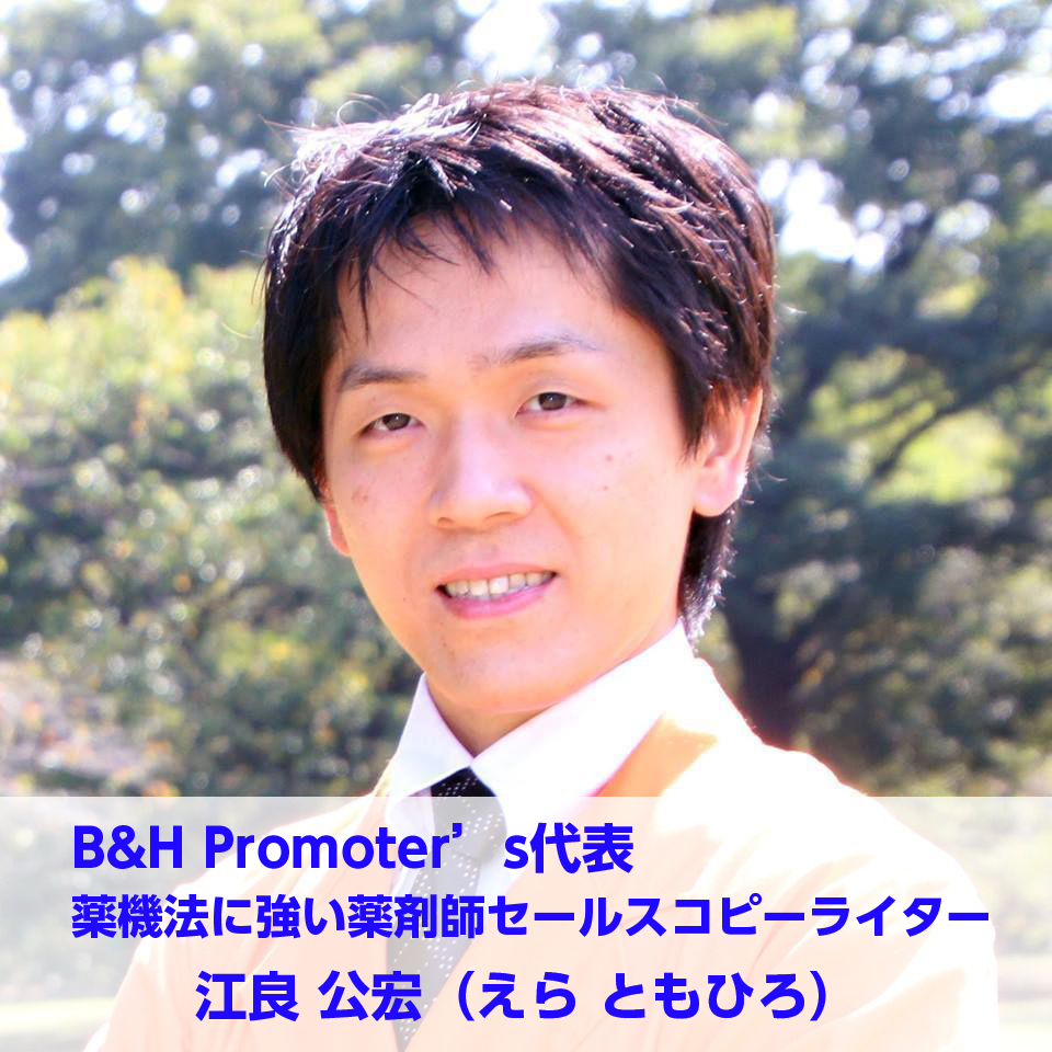 免責事項 | 薬機法など法律的な内容を扱っていますが、時代の流れ、都道府県、担当者によっても判断が分かれることがあります。 そのため、アドバイスに対して100%の保証をすることはできません。実施の際はあくまでお客さまご自身の責任で実施をお願い申し上げます。 実施に際してB&H Promoter'sは責任を一切負いませんのでご了承ください。 |