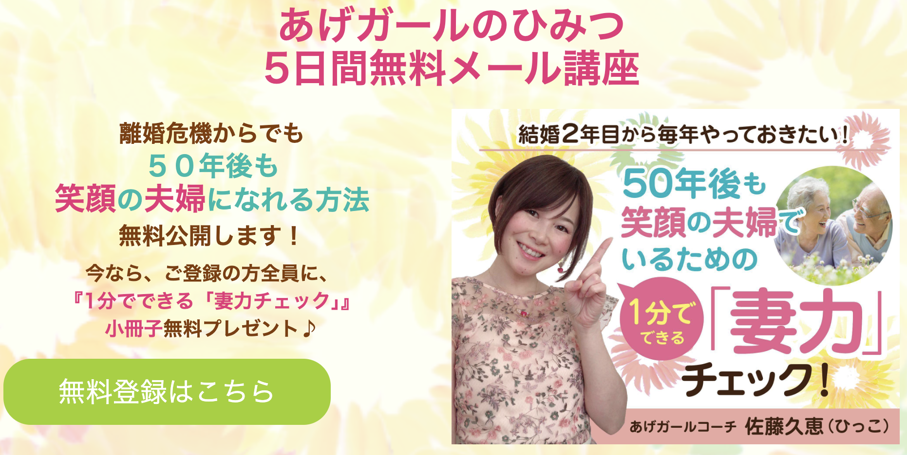 自らの離婚経験を経て「モンスター妻」から「あげガール」へと転身を遂げた佐藤久恵が、コーチング、心理カウンセリング、心理セラピー、男女心理、脳科学、量子力学、スピリチュアルなど・・・数々の学びから厳選して構築したオリジナルメソッドを、惜しみなく公開!!