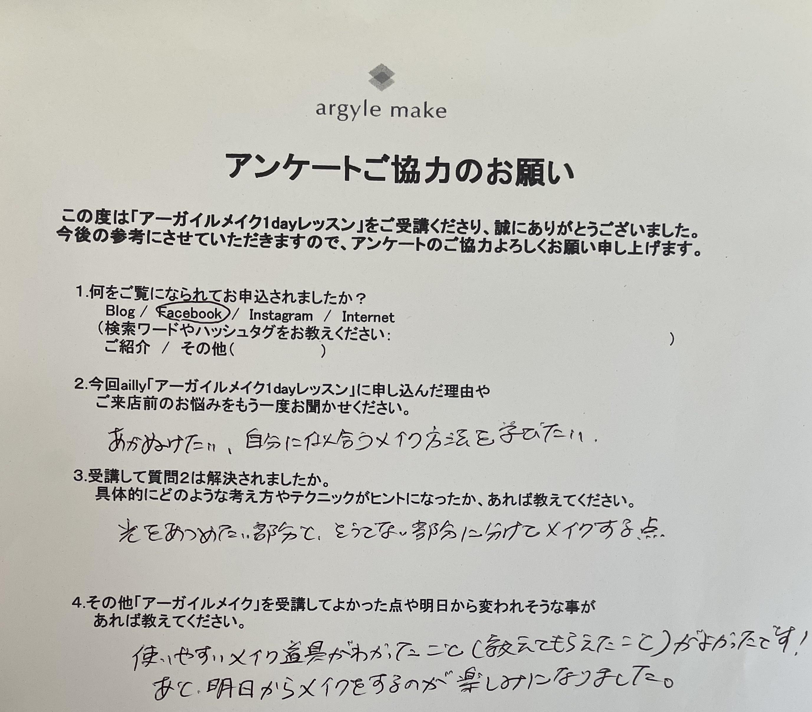 そこで、どんな方でも理論的にメイクができるように骨格メイク「アーガイルメイク®」を学び、自分の顔を客観的に捉え、必ず自分本来の生まれ持った美しさに気付ける骨格メイクレッスンを行っている。