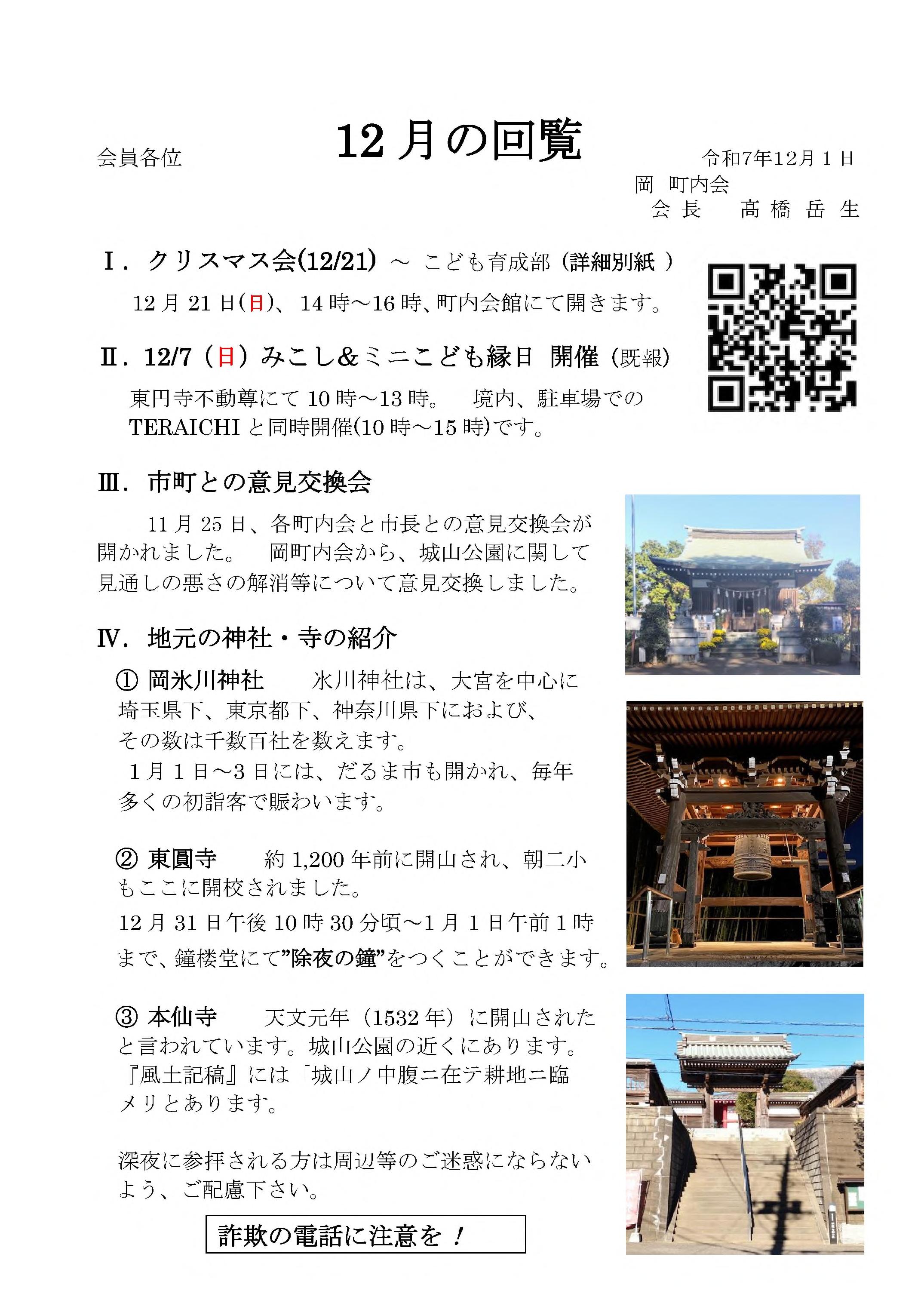 12月7日 東円寺 岡不動尊境内 10時から13時頃 |