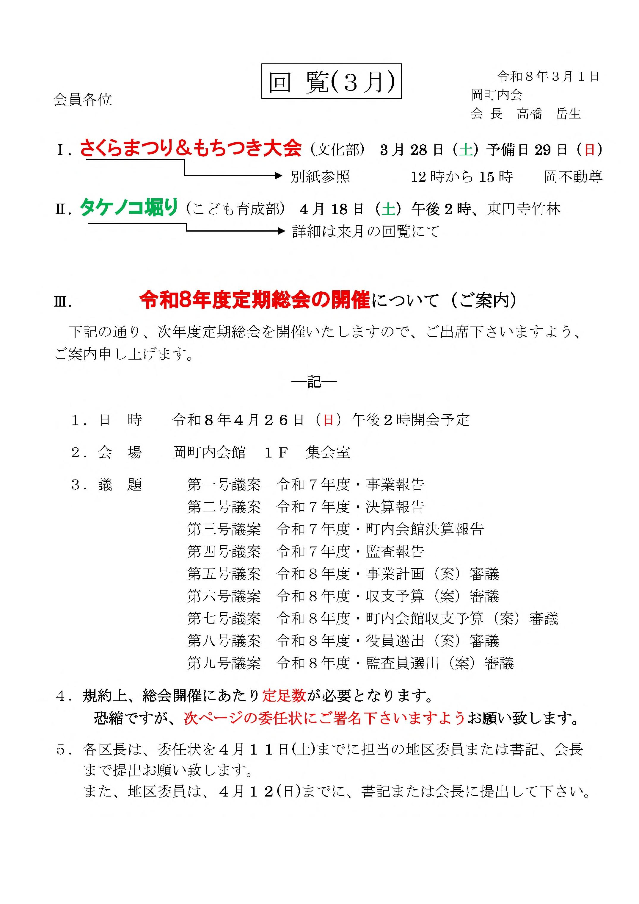 3月28日(土)、雨天の順延 予備日 3月29日(日) |