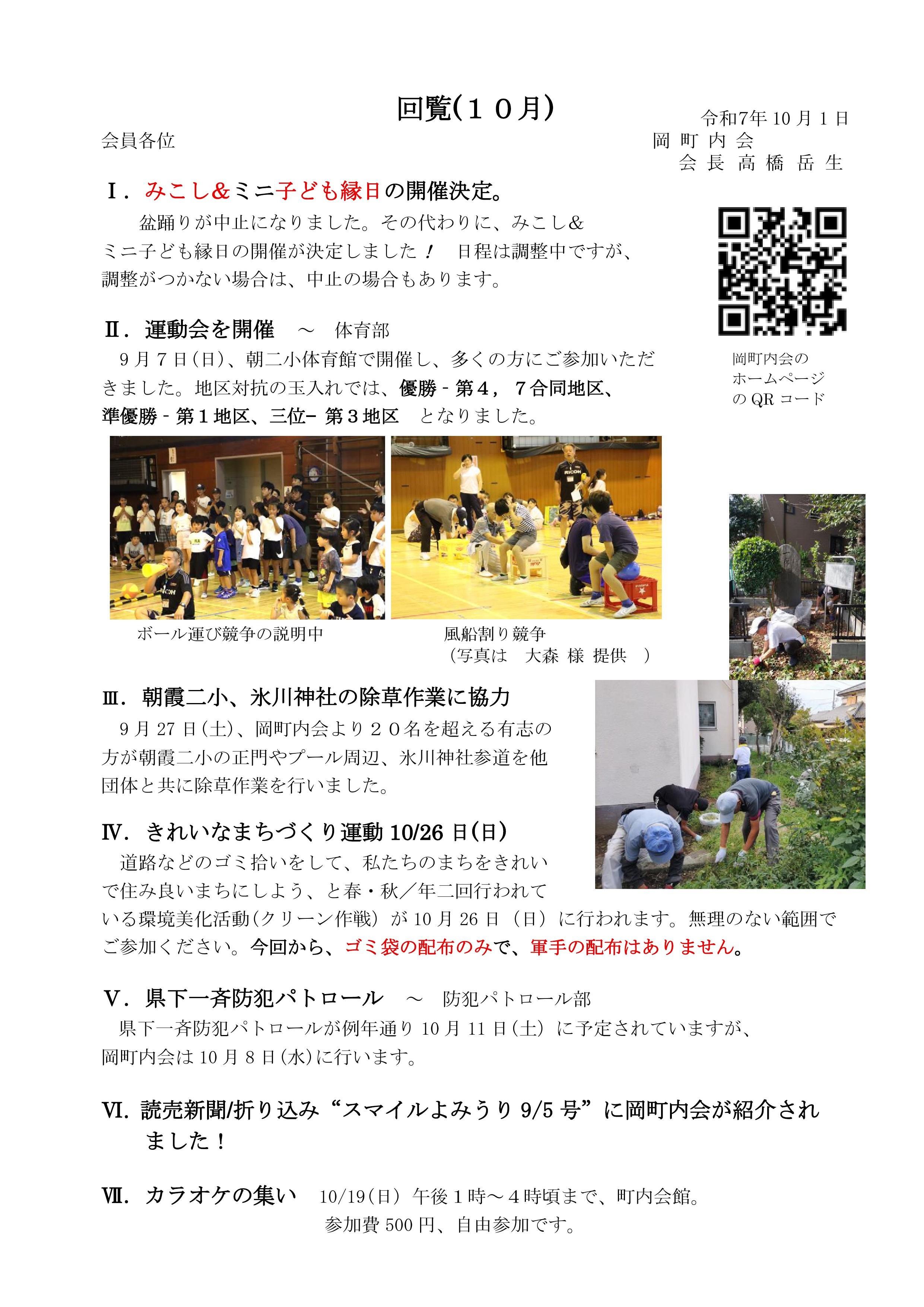 連絡先 岡町内会 会長 高橋 岳生(たかはし たけお)