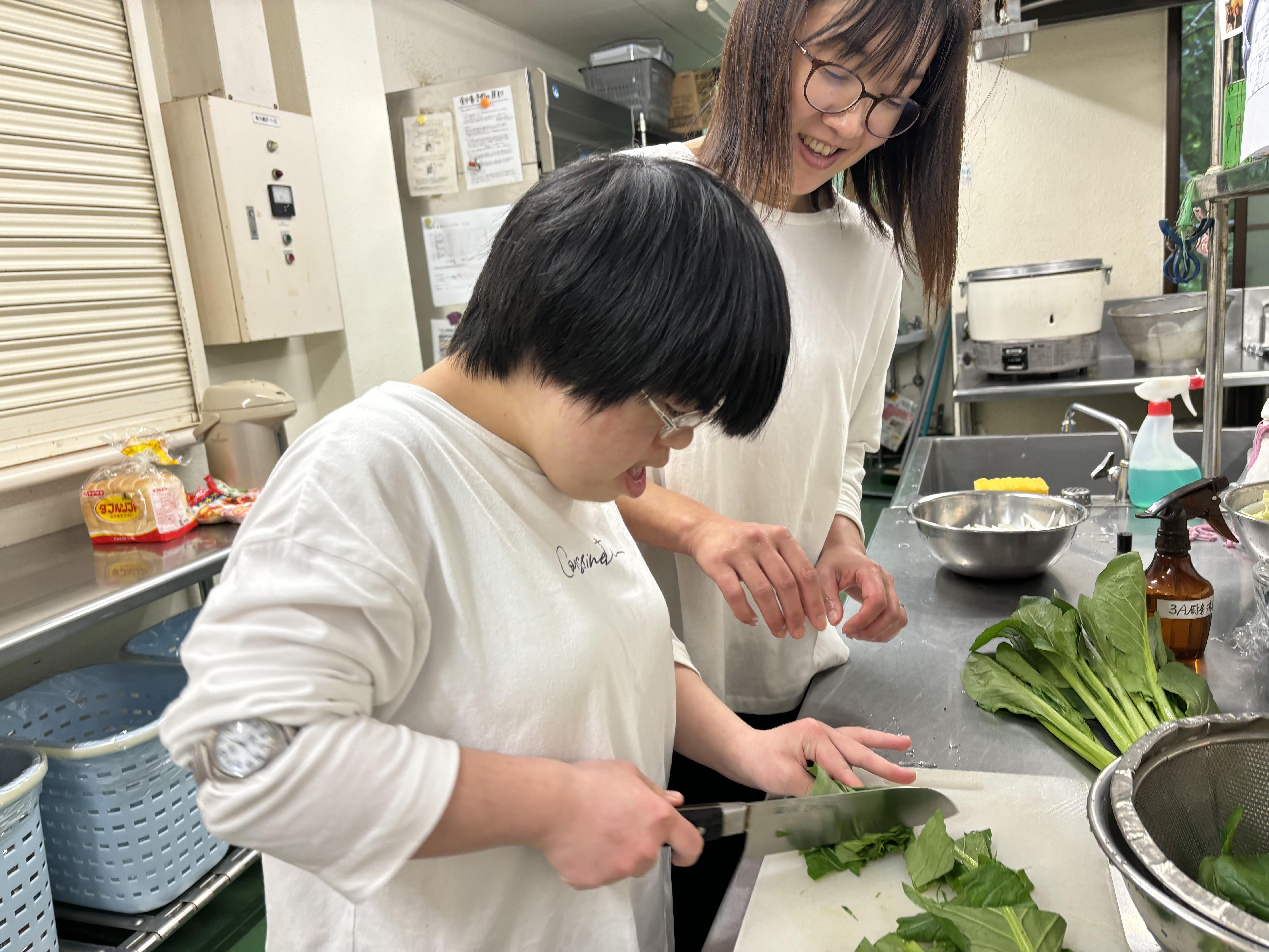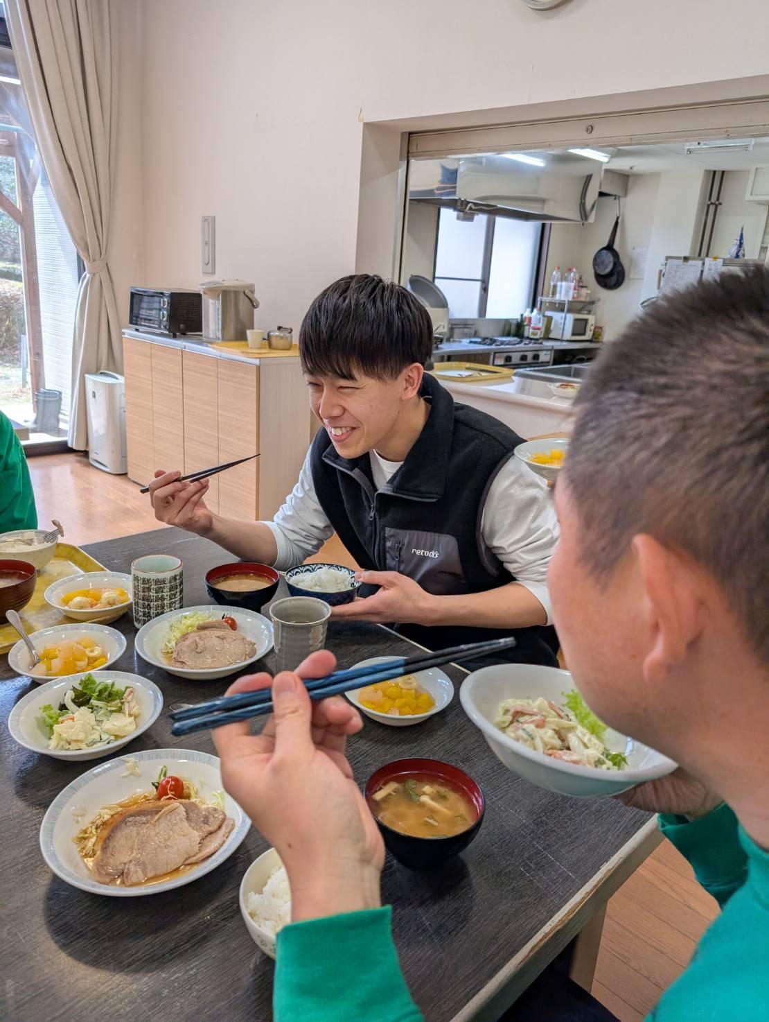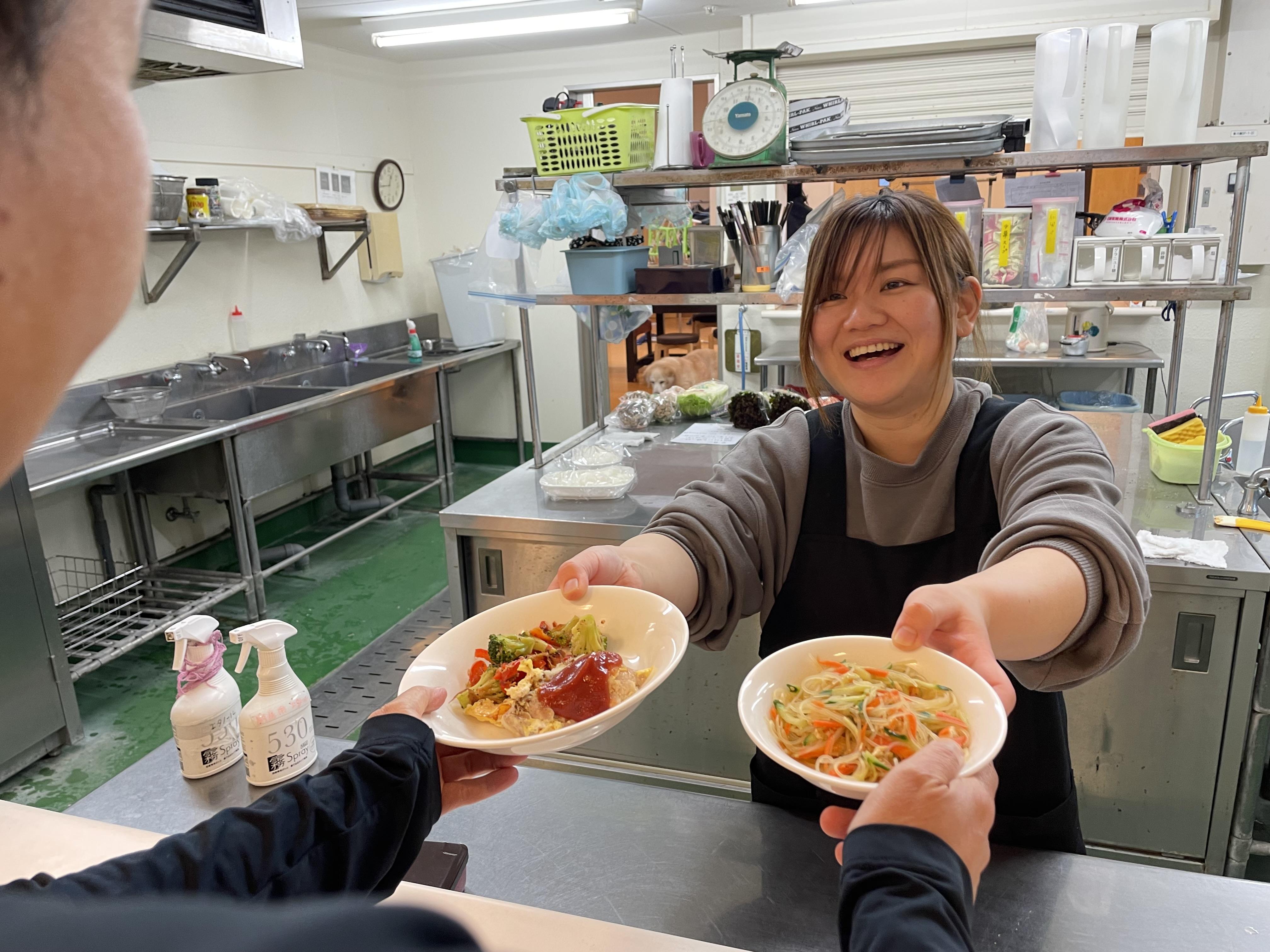 利用者の方の生活面での支援(食事・入浴・排泄等生活全般の支援)や日中活動支援 (調理・陶芸・農芸・織物・椎茸栽培等)を通してお互い理解しあえるようになり、 コミュニケーションも自然に取れるようになります。利用者の小さな成長がこの仕事 をする上での一番の喜びです。