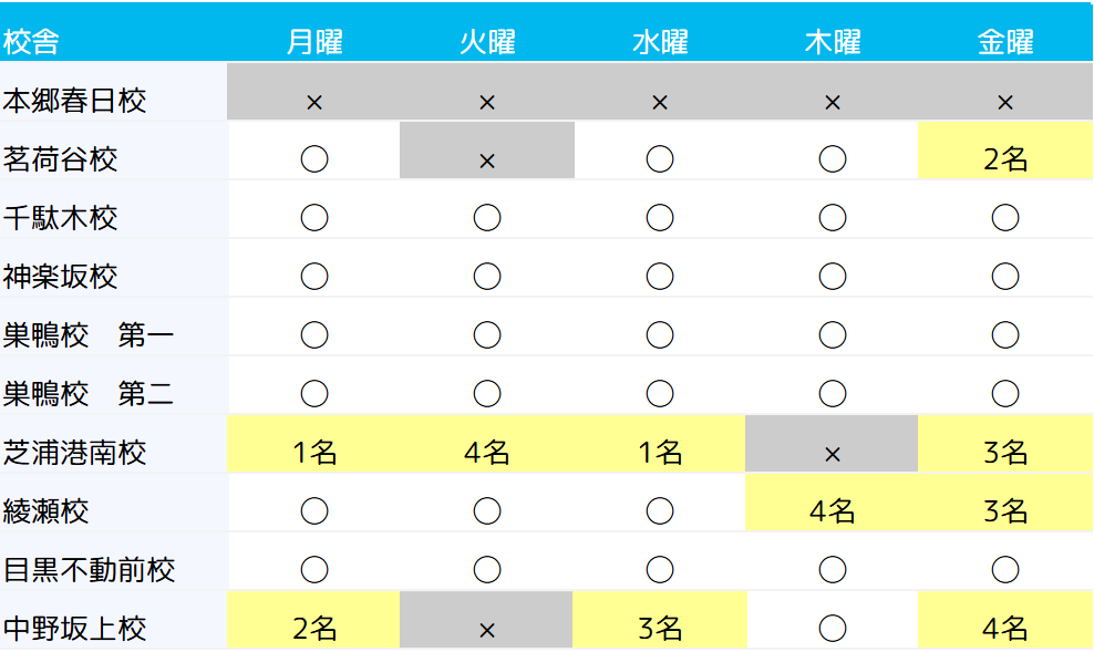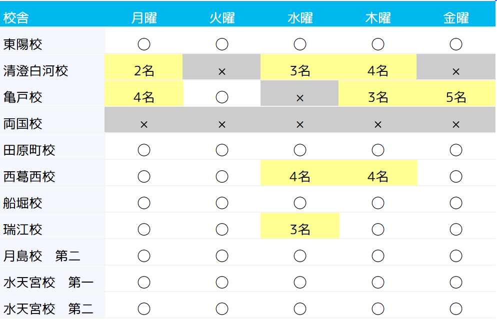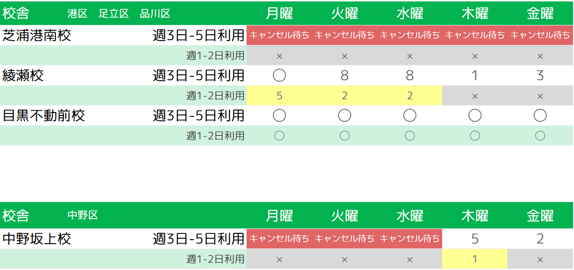 次年度利用開始および当年度利用開始の方のみ空き枠の管理をしています。