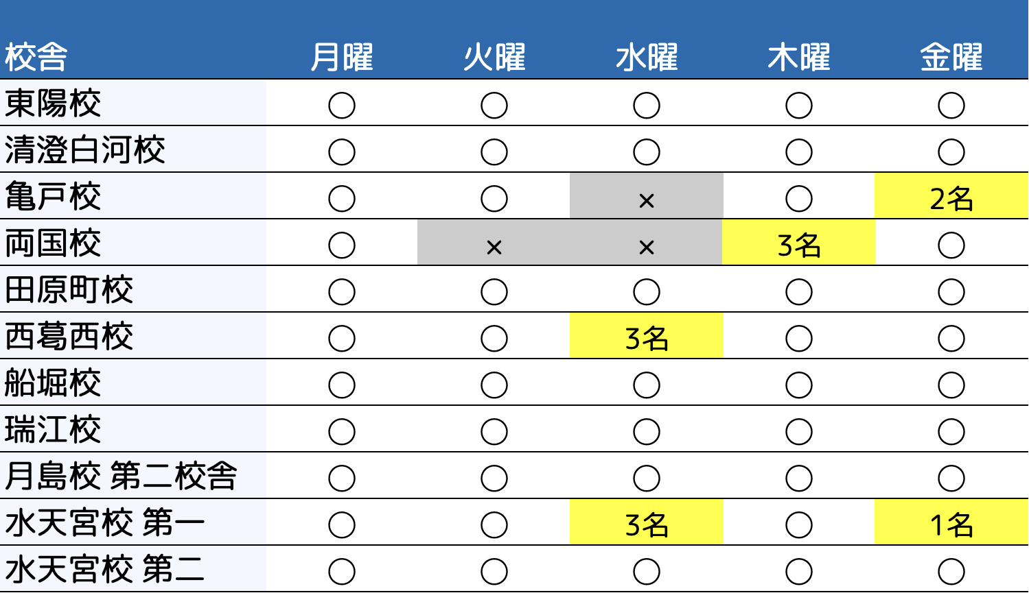 年中以下もしくは次々年度以降の方は、"プレ予約"として入会いただくため空き枠に関係なく入会いただけます。プレ予約の詳細は