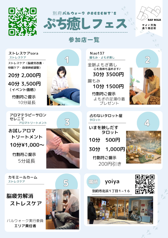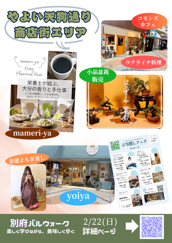| 参加・協賛(順不同) | 【 拠点エリア 】 BYCA ~Beppu Yukemuri Cafe ABURAYA~ の ③ やよい天狗商店街エリア 【スタンプラリー参加】 |