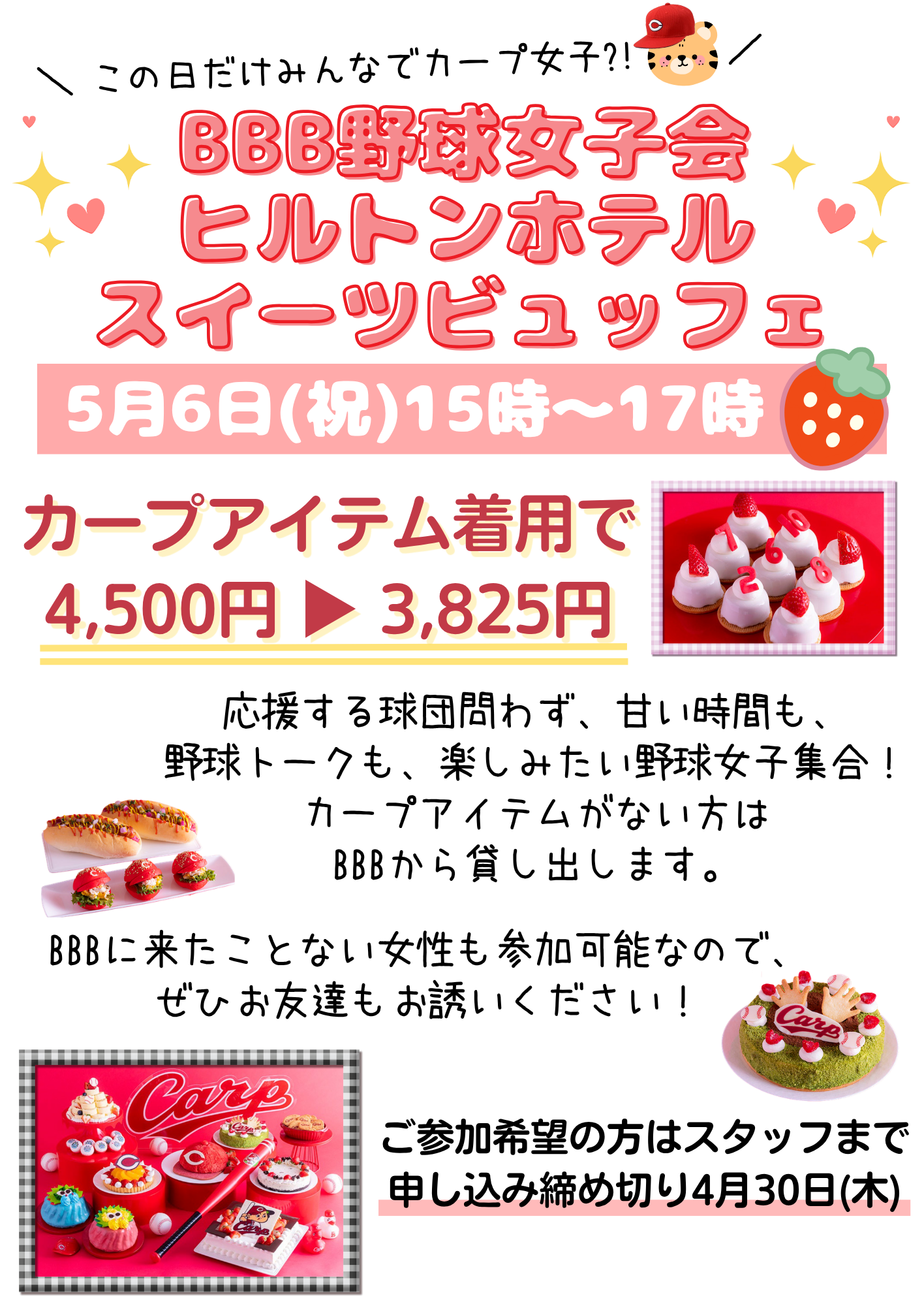 BBB野球女子会ヒルトンホテルスイーツビュッフェ