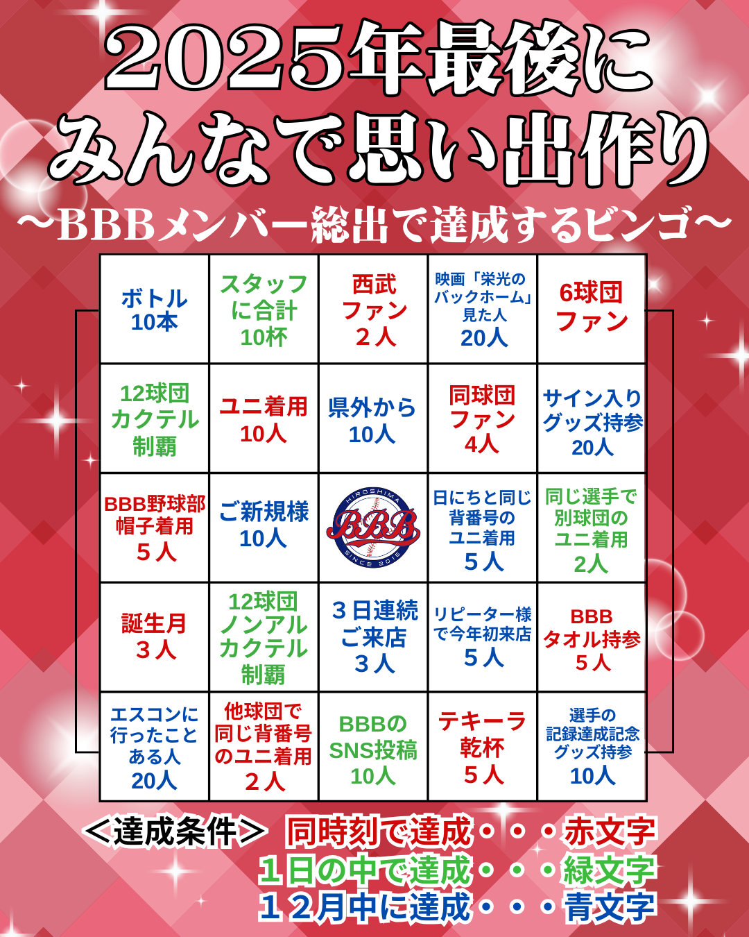 BBBらしい”野球ファン”のクリスマスの演出を一緒にしましょう!