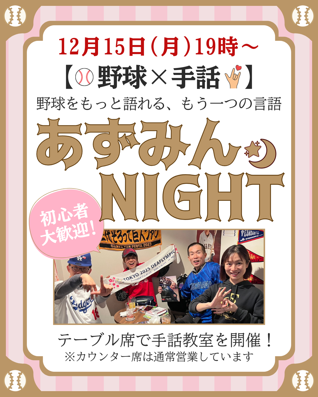 あずみんNight、気になっていた方はこれを機に私と一緒に手話で野球を語りませんか?
