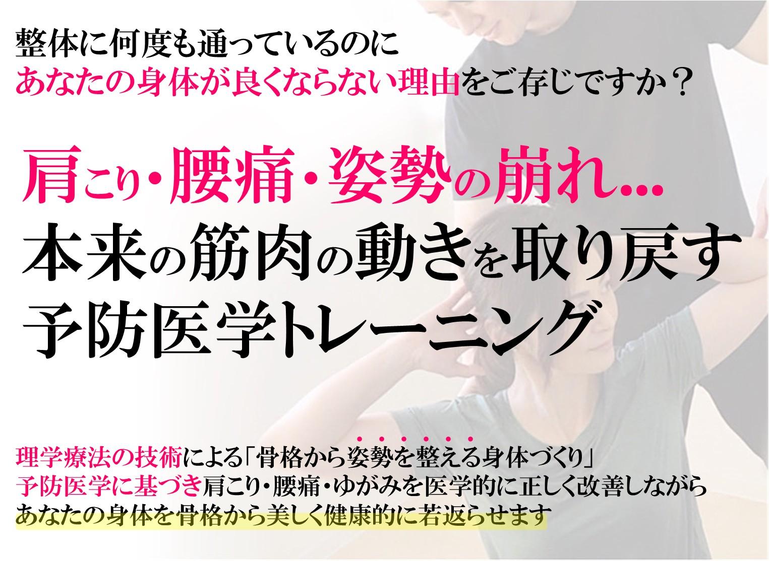 4.腰痛、肩こりなどが長期間続いており、整体などの治療でも一時的な改善しか得られないので、根本的に腰痛や肩こりにならない身体を目指したい方