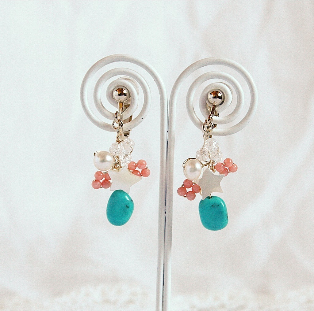 夏らしい珊瑚とターコイズがとても気にいっています。 早速、お出かけに大活躍です!! いつもは大ぶりなアクセサリー好みですが、 色が気にいり購入させていただきましたが、小ぶりさが新鮮で まさに「45歳からの品よく可愛い毎日のアクセサリー」って感じです♡ 大切に使わせていただきます。ありがとうございました。