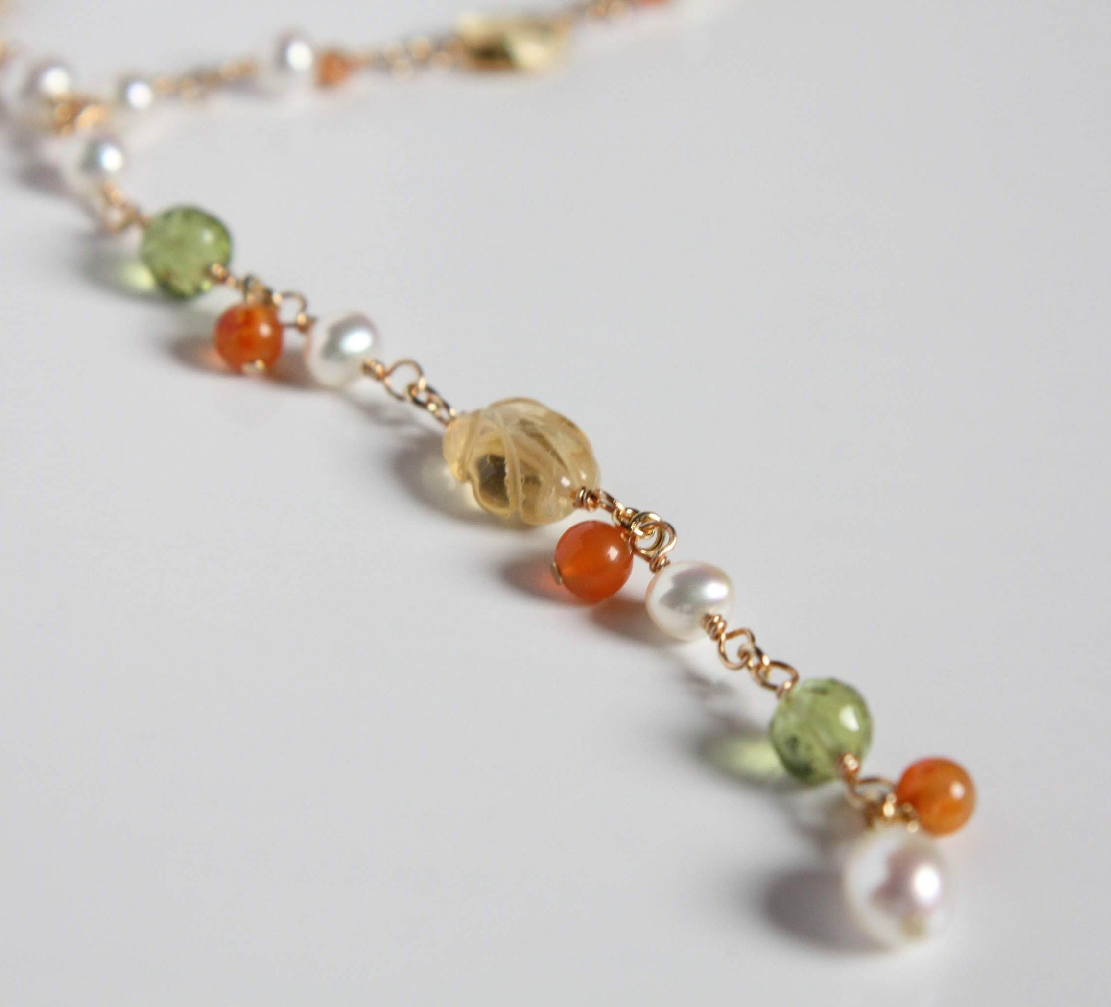 自然な色合いと自然な質感のある天然石は、肌なじみもよく普段着にもよく合います。