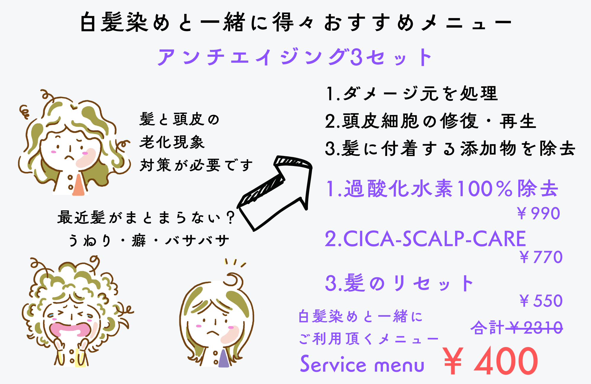 2026年5月2日まで白髪染めメニューを500円引きいたします