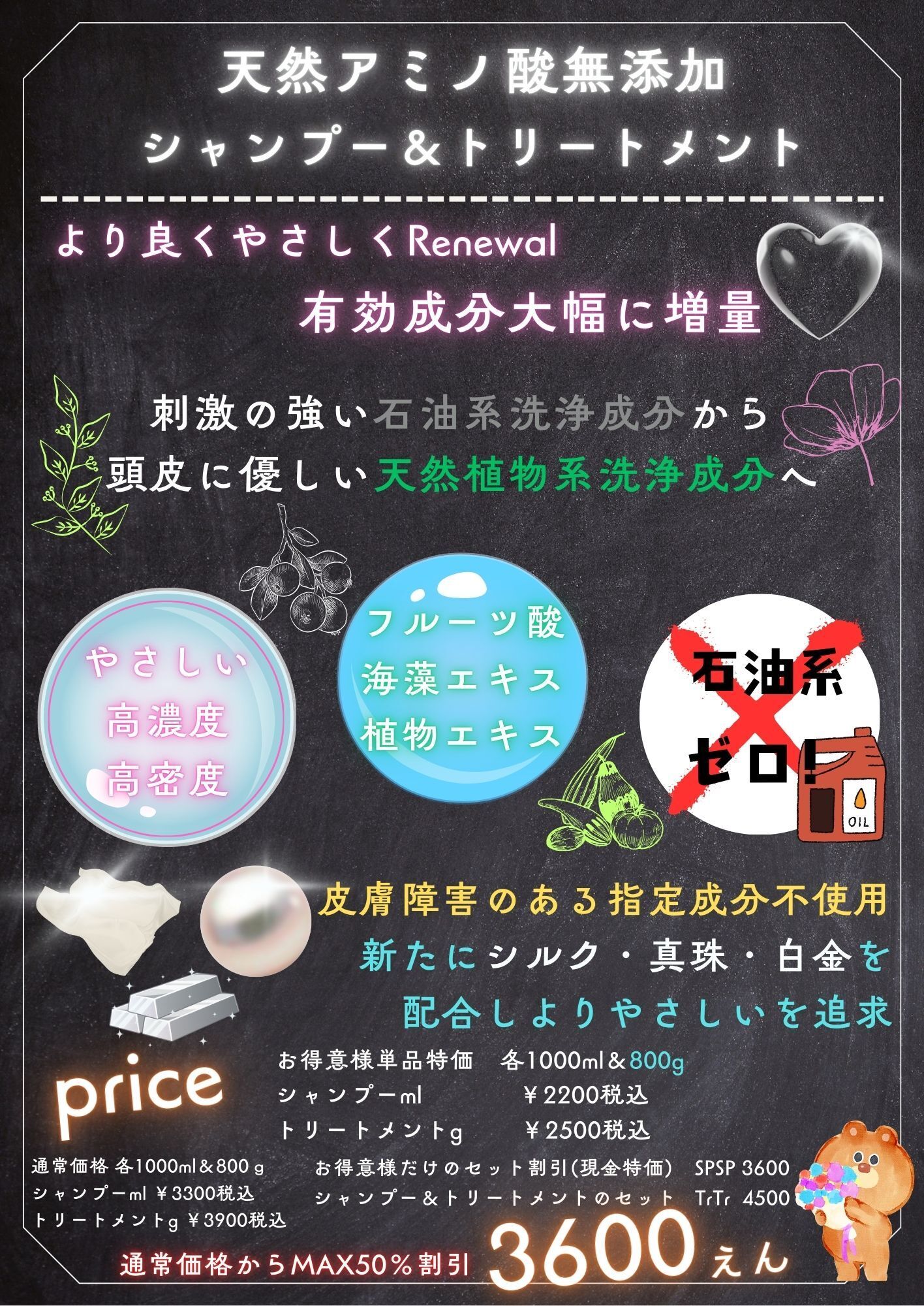 | 2シャンプー | トリートメントのみご利用の方 シャンプーご希望の方 1100円税込 |