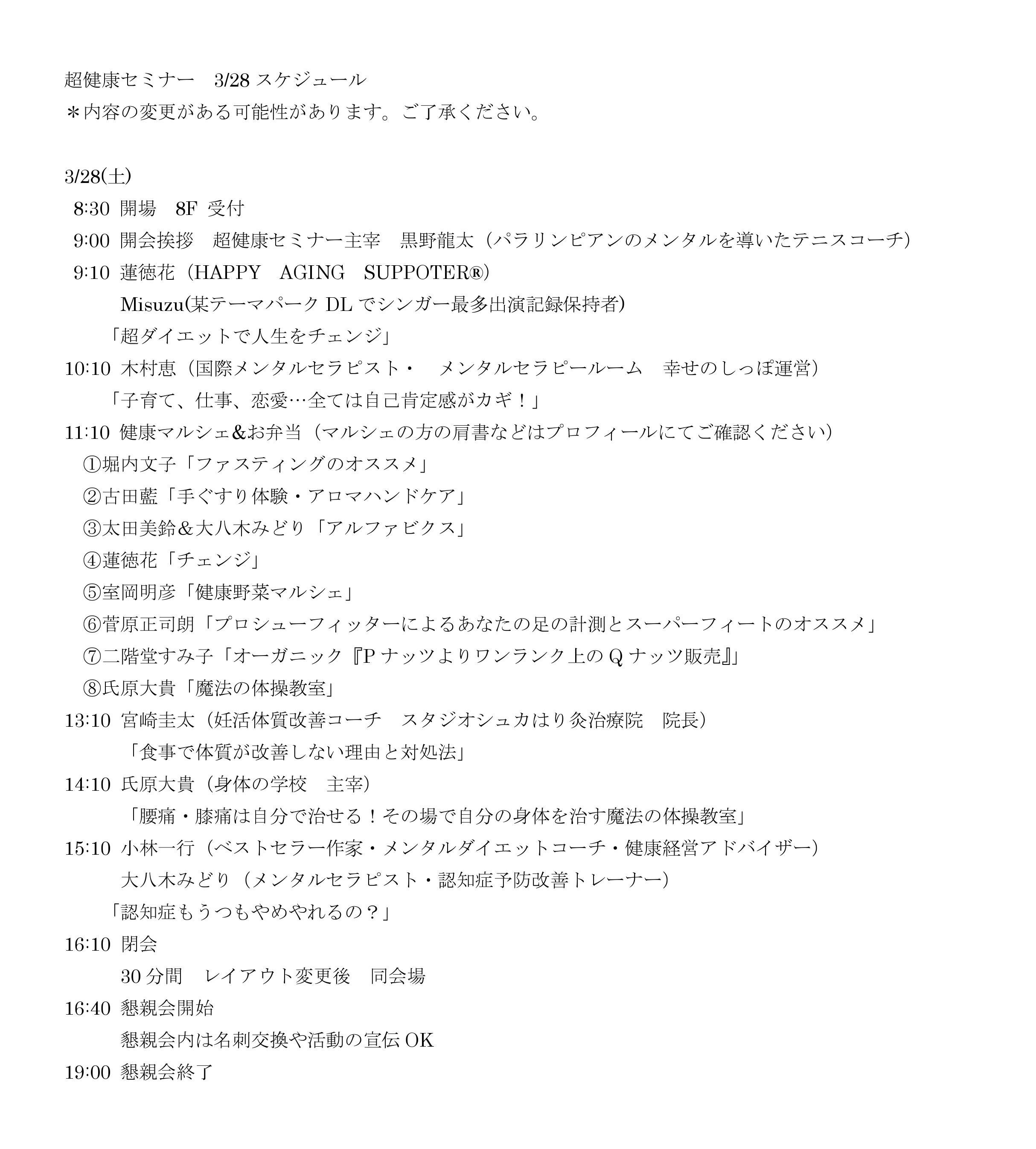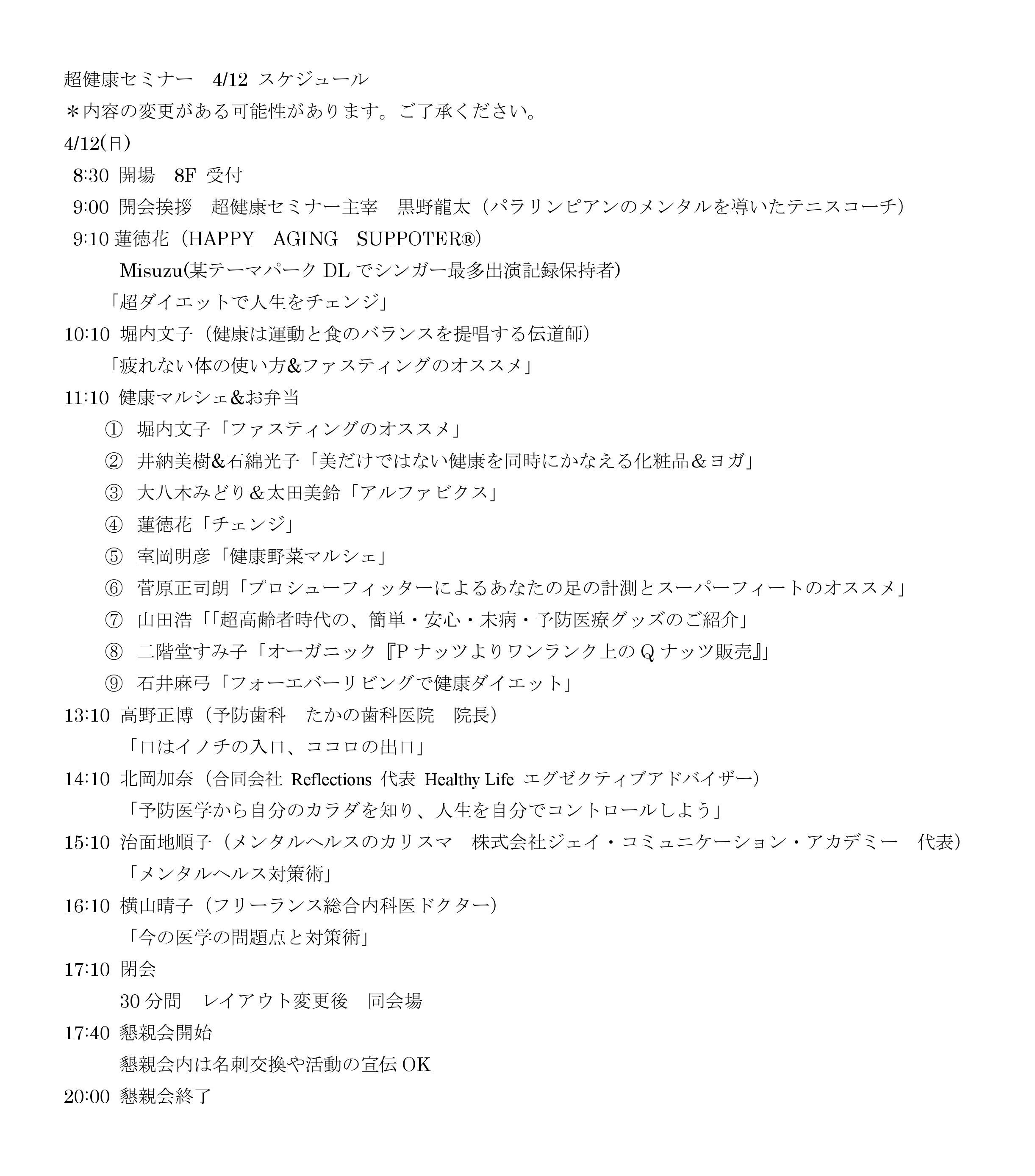 この「超健康セミナー」にたくさんの情報を持っている方々が集まりました。