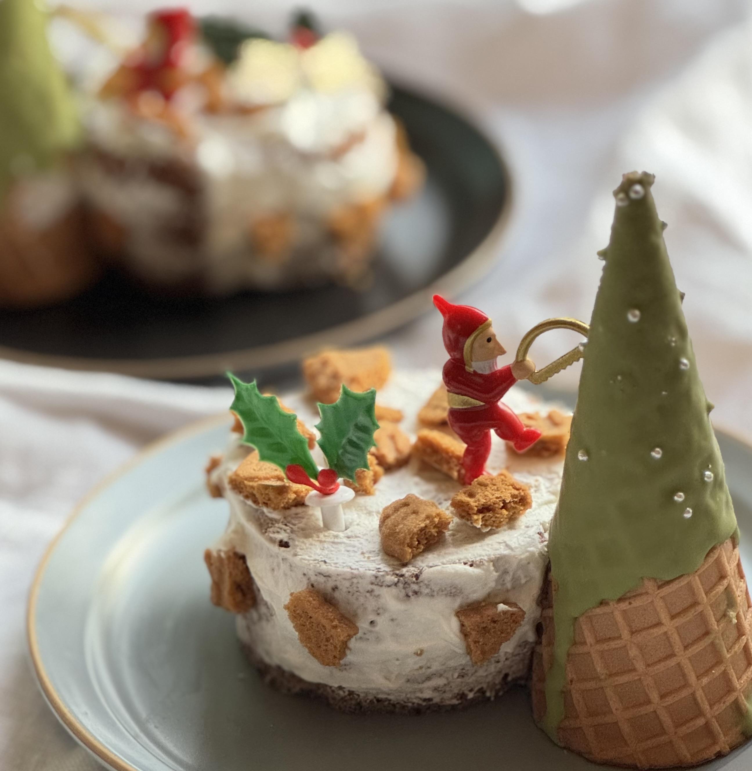チョコロールケーキにクッキーを並べて、ツリーとサンタをのせたら完成🎅💫おうちが一瞬でクリスマスパーティーに🎉