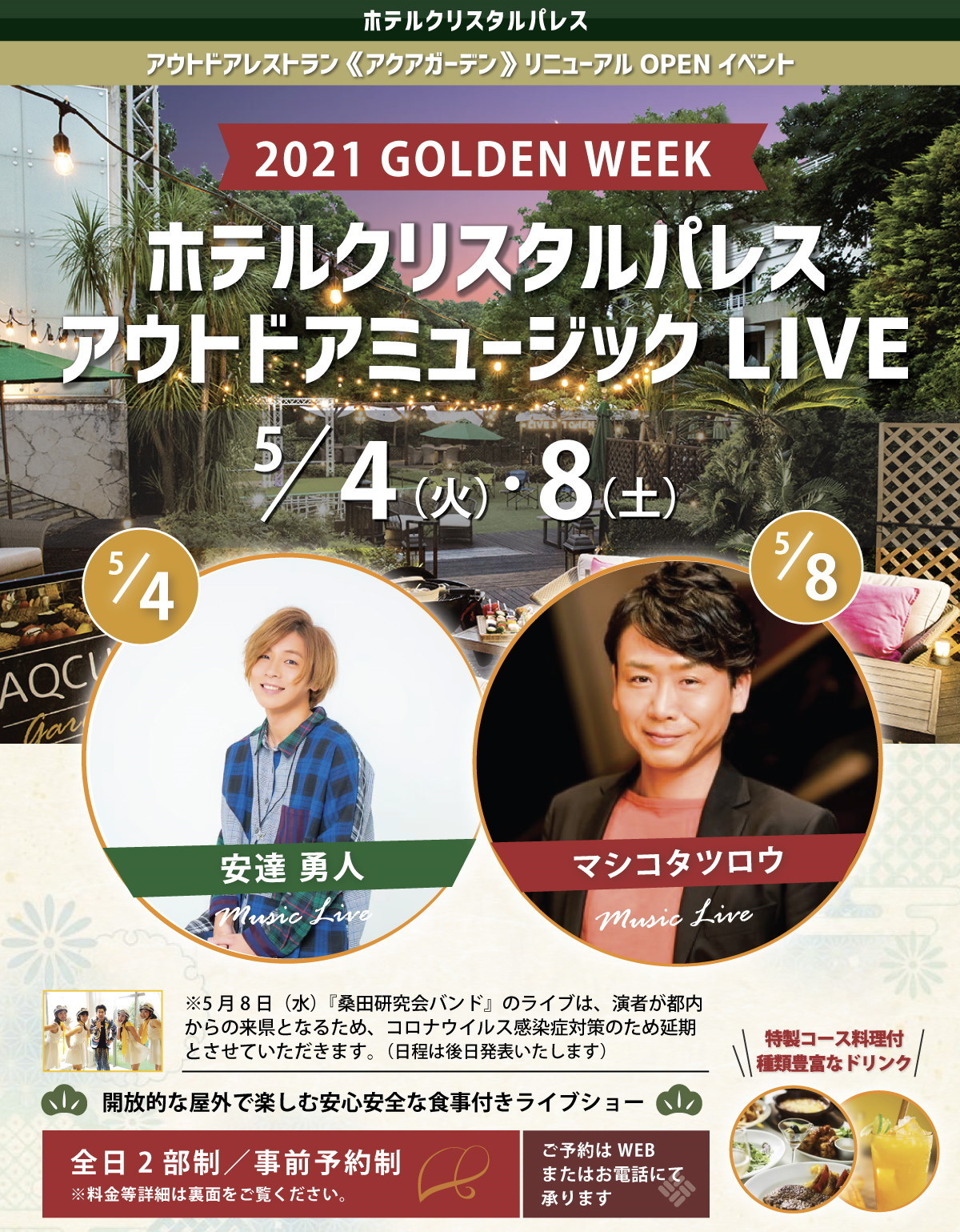 テイクアウトのお食事はライブ終了後にお渡しさせていただきます。ライブのみ、当初の予定通り屋外で実施させていただきます。