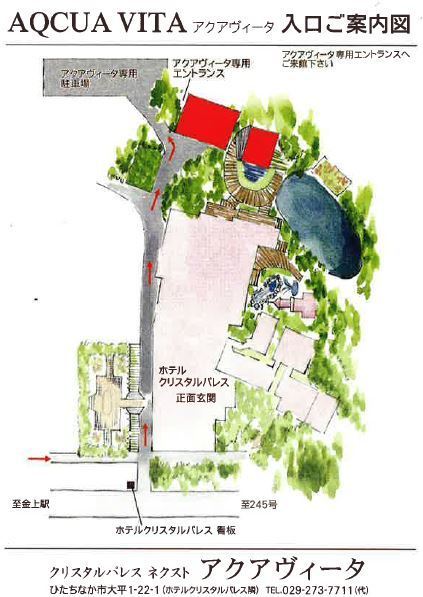 当日ご来館の際は、ホテルクリスタルパレス隣、アクアヴィータ専用エントランスよりご来館くださいませ。
