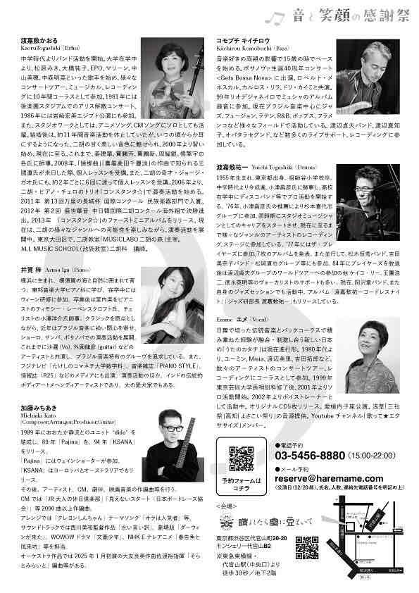 【メール】reserve@haremame.com (公演日(12/20昼)、氏名、人数、連絡先電話番号を明記の上)