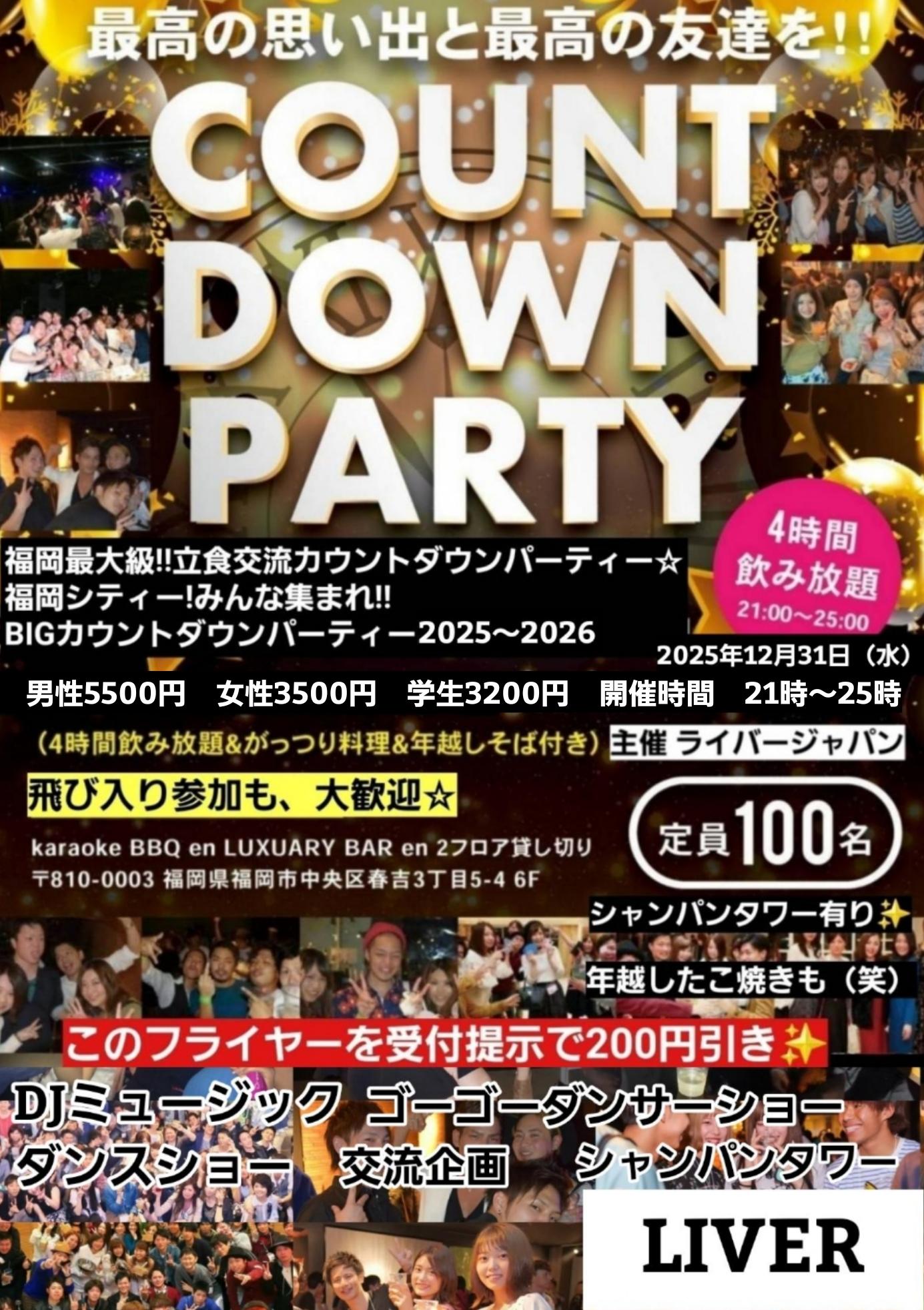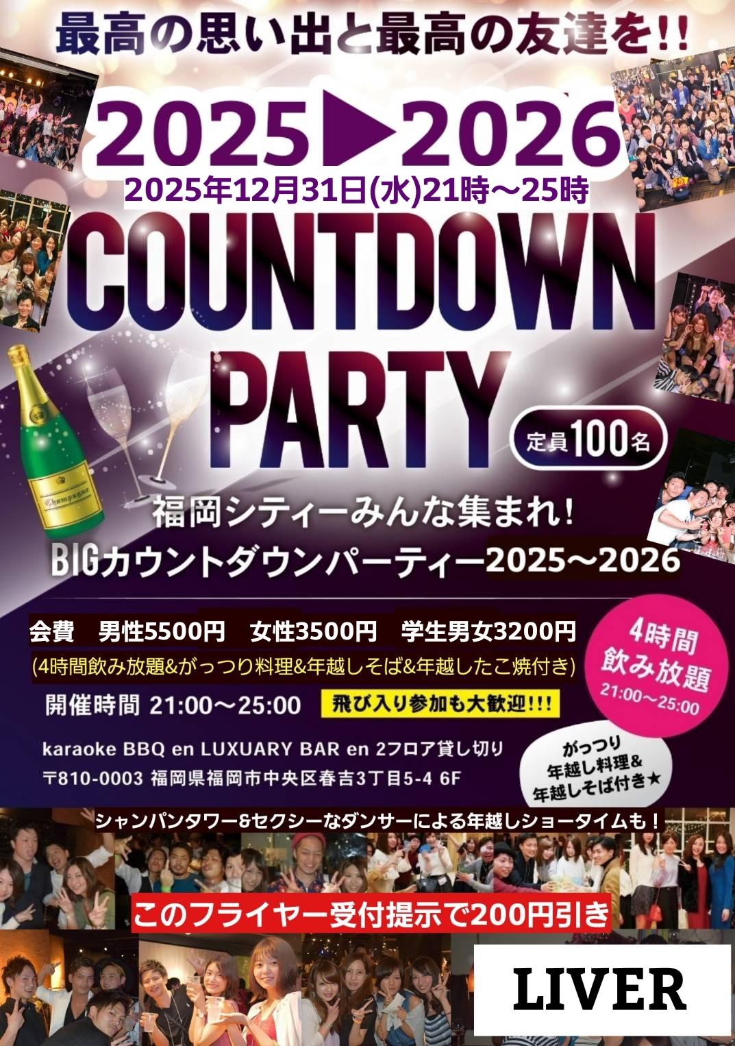 2025年~2026年への福岡のカウントダウンパーティーは、これで決まり!!
