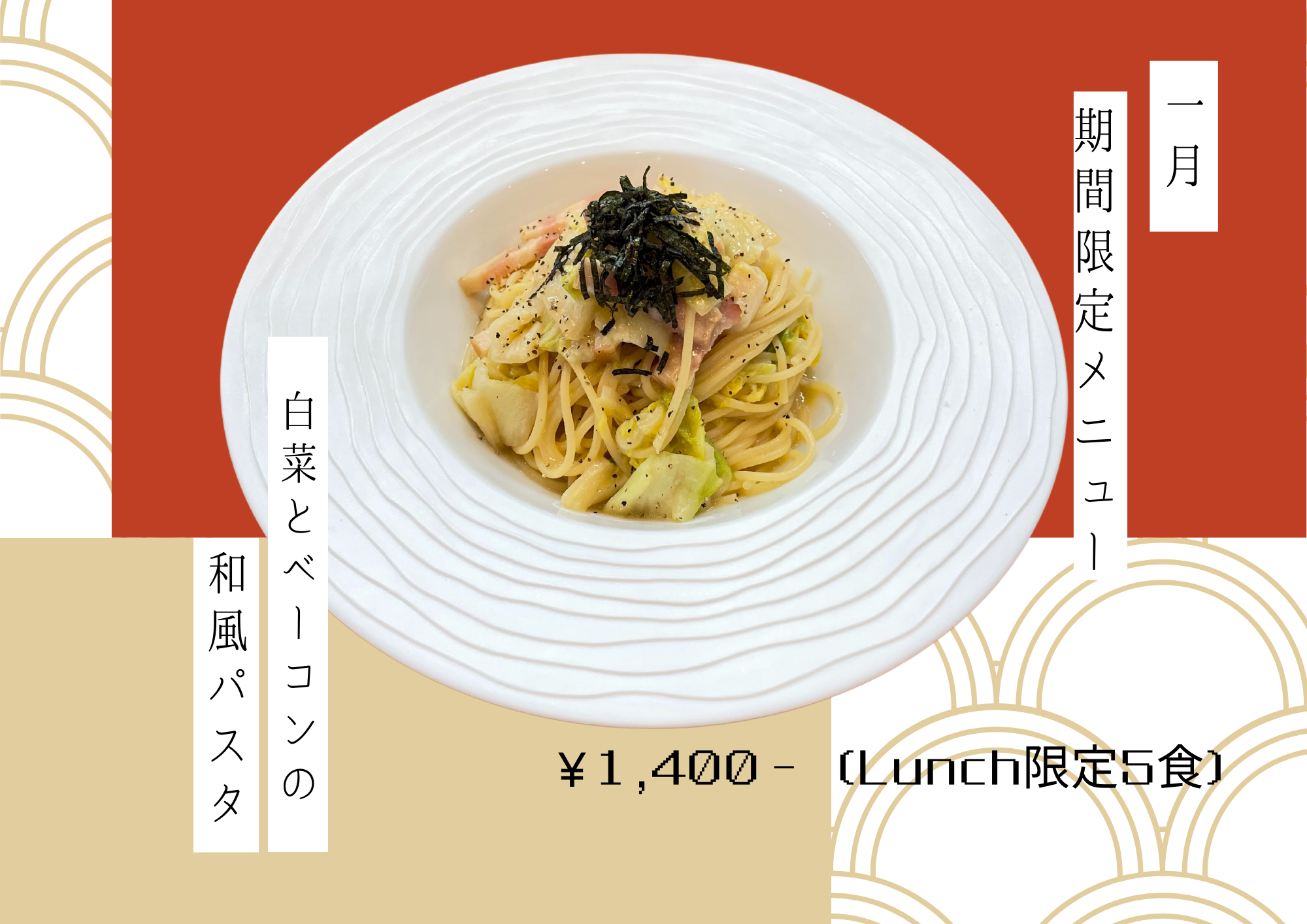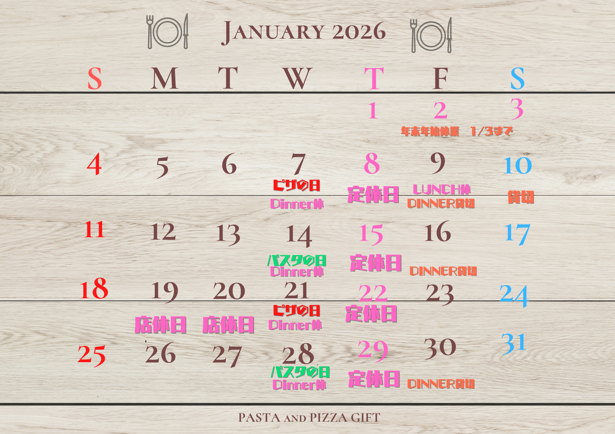 | 営業時間 | Open 月〜日 Close 水曜夜・木曜 Lunch 11:00-15:00(L.O14:30) Dinner 17:30-22:00(L.O21:00) |