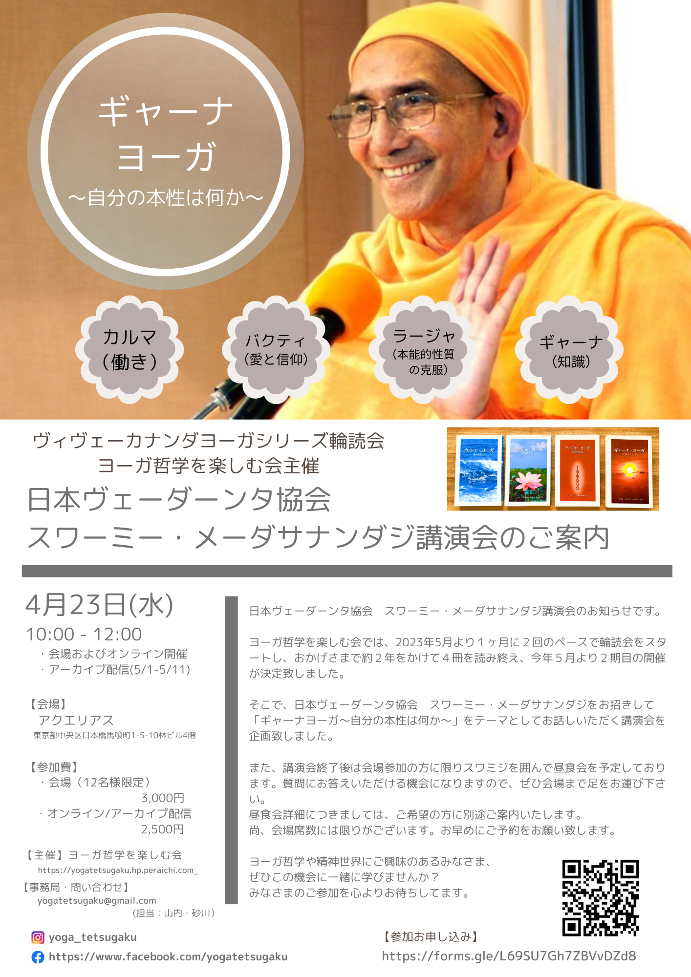 【2025.03.01】日本ヴェーダーンタ協会 スワーミー・メーダサーナンダジ講演会お申し込み受付を開始しました |