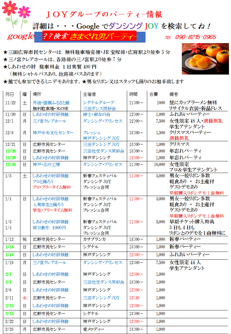 三田市・丹波市・福知山市・神戸市北区・丹波篠山市、綾部市・舞鶴市・朝来市・養父市・三木市・小野市・西脇市・加東市・豊岡市・加西市・加古川市・姫路市・西宮市・宝塚市・伊丹市・尼崎市・京丹後市・芦屋市・明石市・猪名川町・多可町・宮津市・亀岡市・南丹市・京都市・播磨・但馬・阪神・高砂市・赤穂市・神戸市・相生市・三田・広野・丹波・福知山・丹波篠山・神戸北・綾部・舞鶴・朝来・養父・三木・小野・西脇・豊岡・加西・加古川・姫路・西宮・宝塚・伊丹・尼崎・京丹後・芦屋・明石・猪名川・宮津・亀岡・相生・社交ダンス・宿泊ダンスツアー・宿泊ダンス交流会・社交ダンスパーティー・ダンスパーティー・社交ダンス宴会・カラオケダンス・三田広野・長寿の郷・カウントダウンダンスパーティー・新春ダンスパーティー・ハロウィンダンスパーティー・クリスマスダンスパーティー・舞踏会・広野市民センター・三田広野市民センター