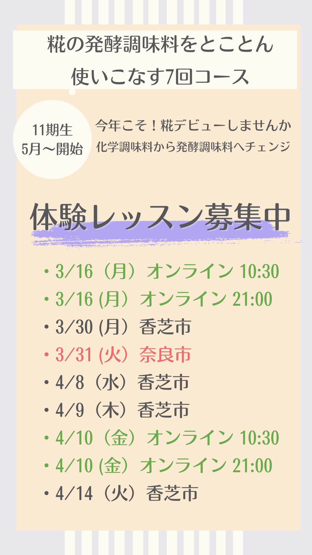 これまでは、主に糀の調味料(塩糀、醤油糀、甘糀)について単発レッスンばかりやってきたんですが、ずっとずっと思ってたことがあります。
