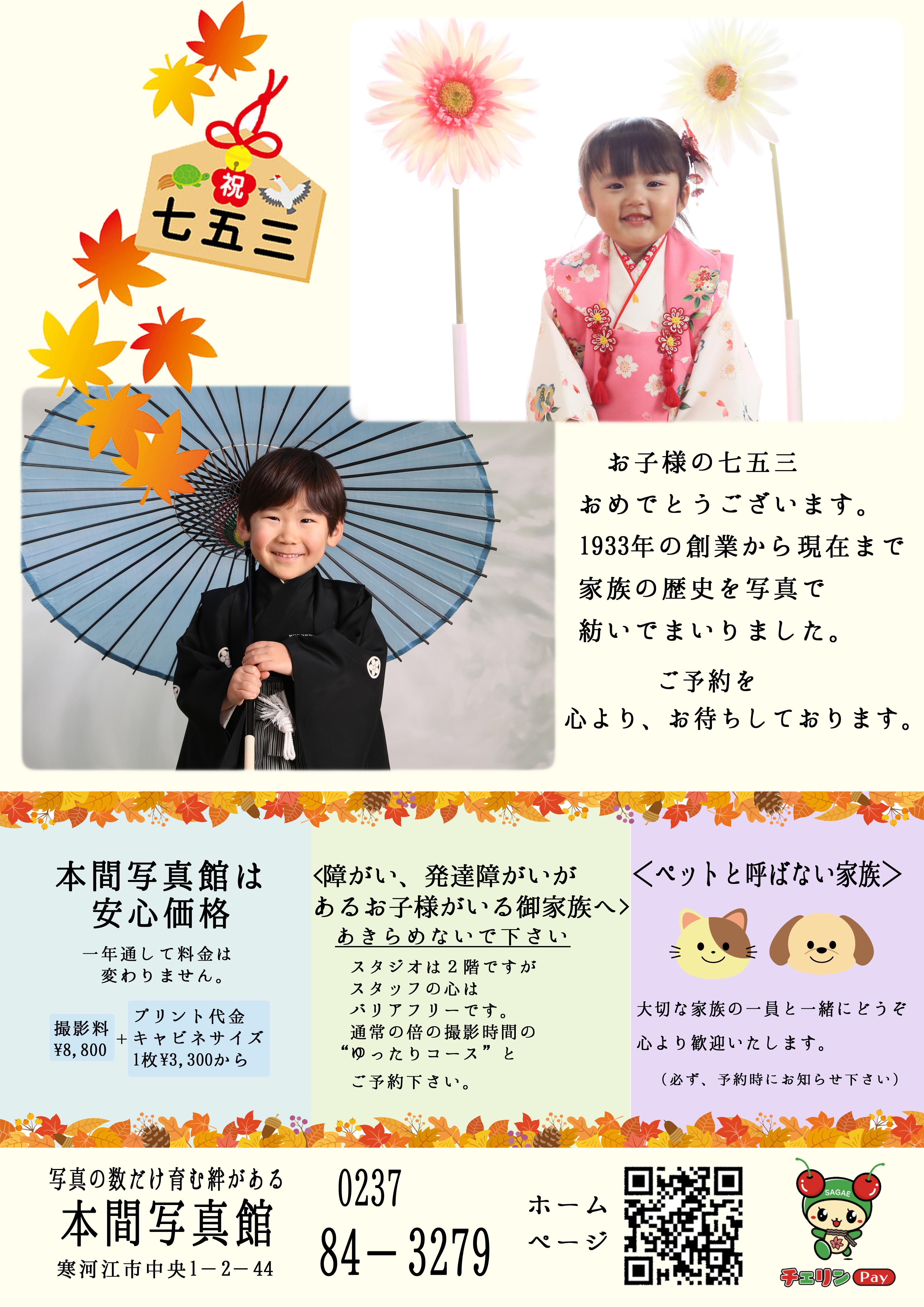 本間写真館は、お子さまお一人お一人の成長を、親戚のように見守らせていただきたいと思っております。