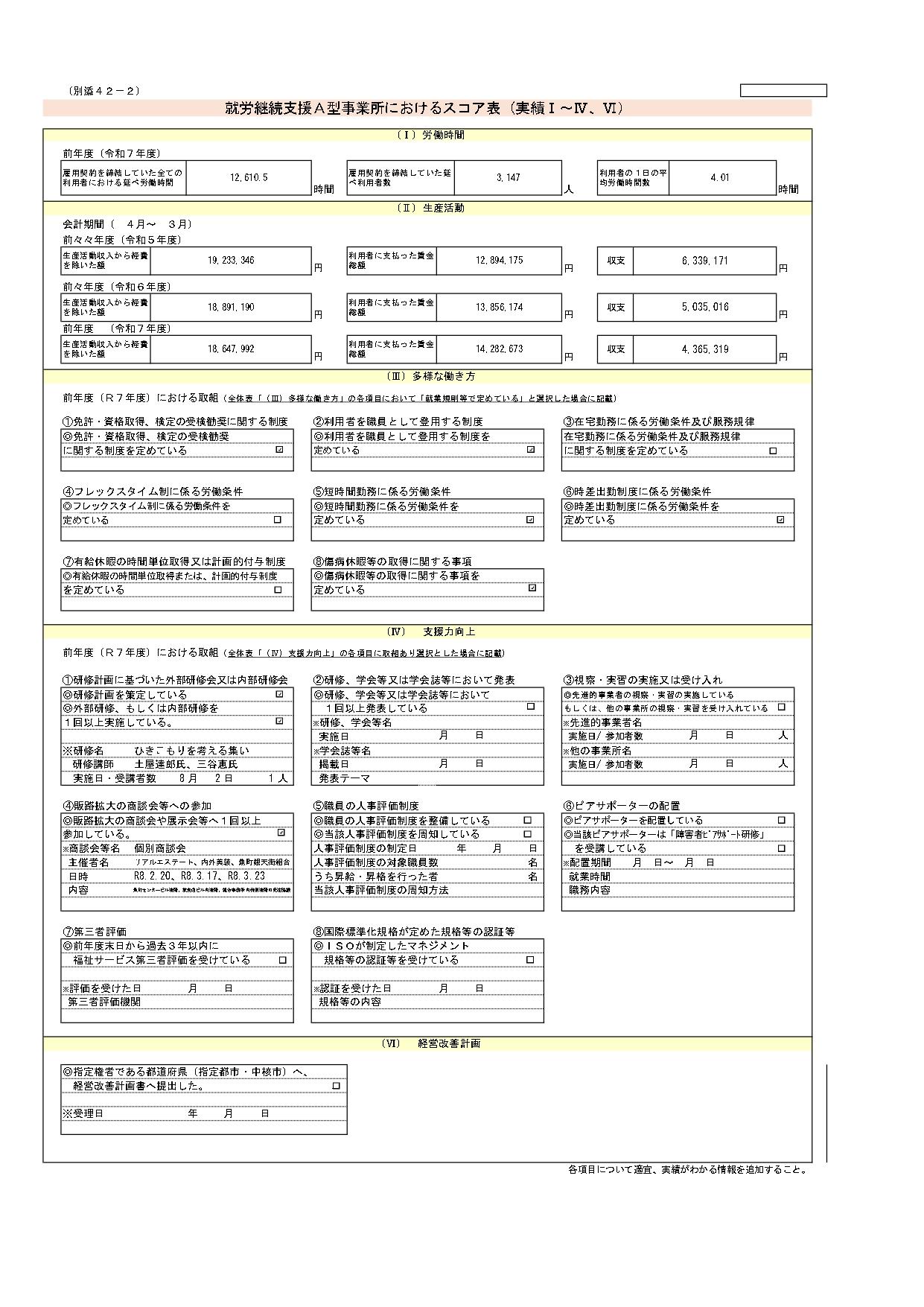 | 利用時間(労働時間) | 営業日・営業時間の中で、個別の利用契約・雇用契約で決定します。(おおむね週5日、1日4~5時間) |