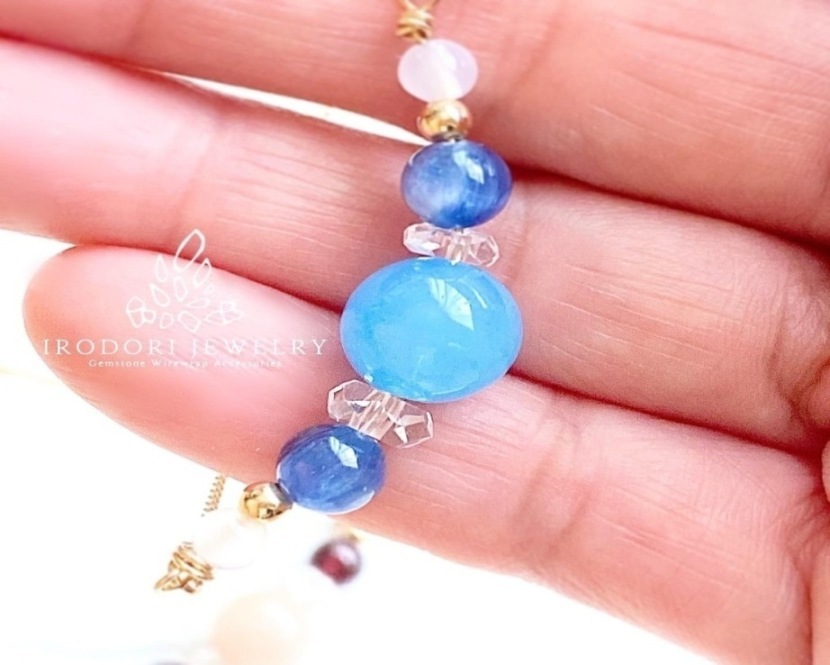 天然石(特に原石)に魅せられ、それをアクセサリーにしてみたいと思い立ち、2018年から「天然石ワイヤーラップアクセサリー」の製作・販売もしており、今回「いろどりセッション」に天然石を取り入れるに至ります。