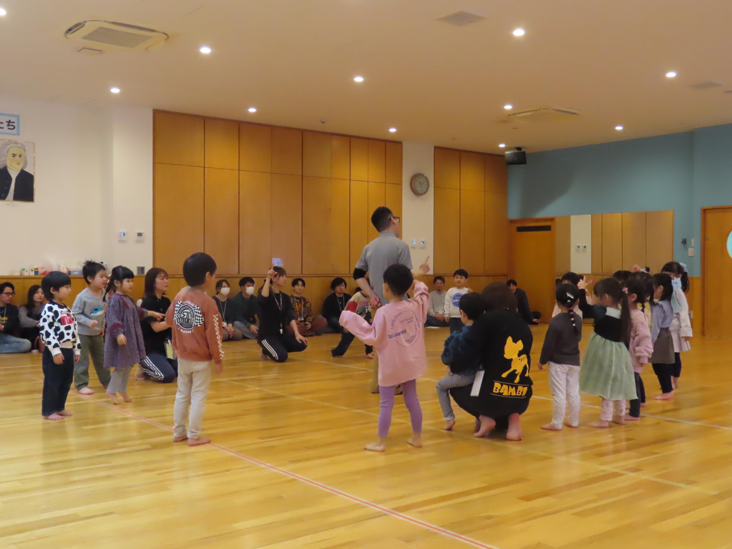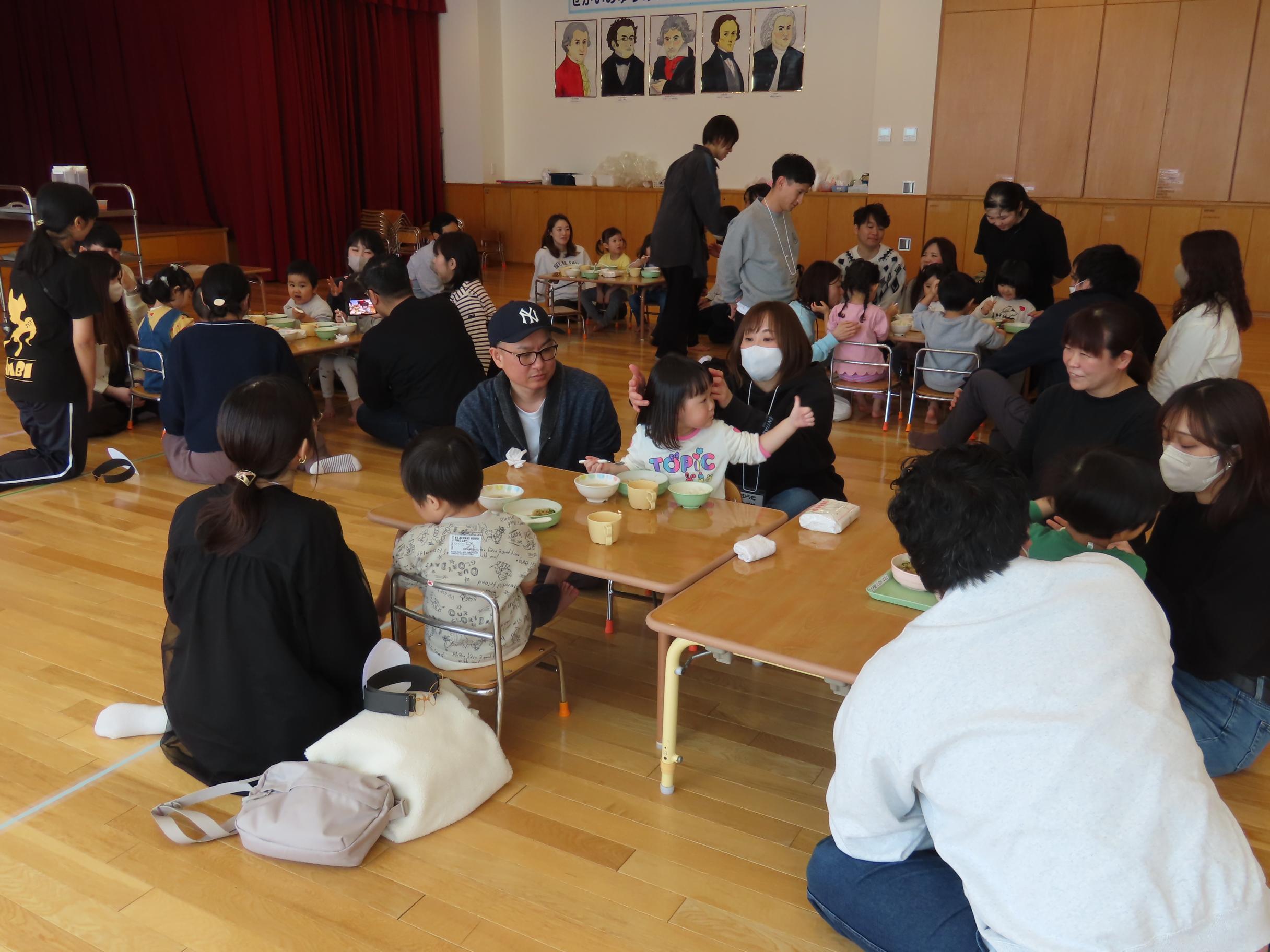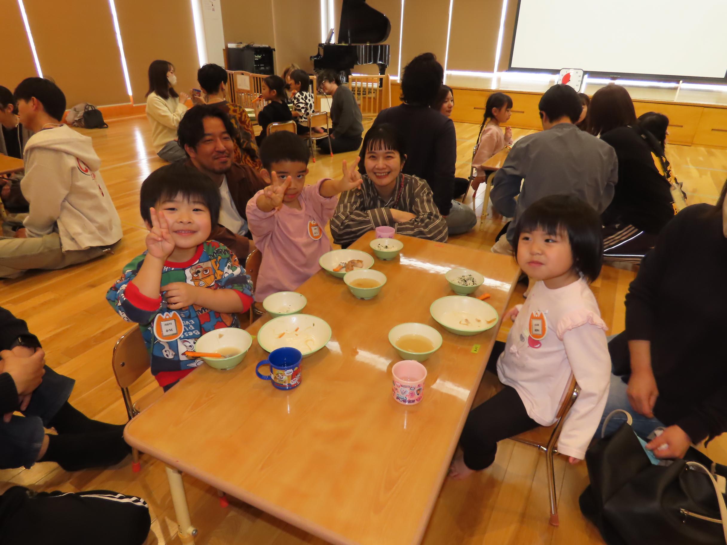 参観日、お忙しい中ありがとうございました!「英語であそぼう」やリトミックの活動の様子をご覧頂き、子ども達の成長を感じて頂けたでしょうか?「親子でボールリレー」では親子で息ピッタリな姿が沢山見られ嬉しくなった担任です💕食事準備時にはテーブルを出す等、沢山ご協力を頂きありがとうございました✨✨