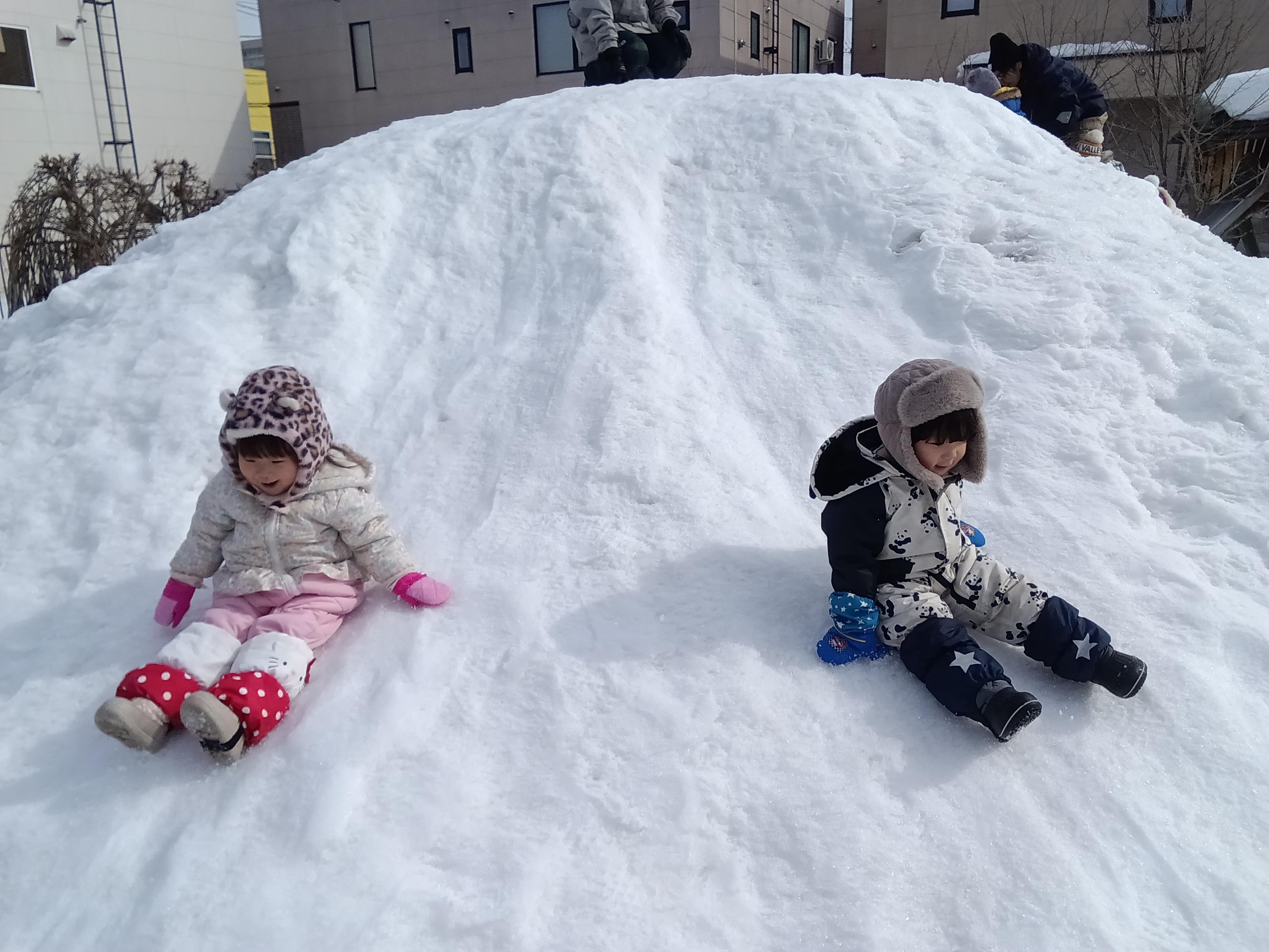 そりに乗ったり、アクティブに雪山に登ったりして楽しみました😊