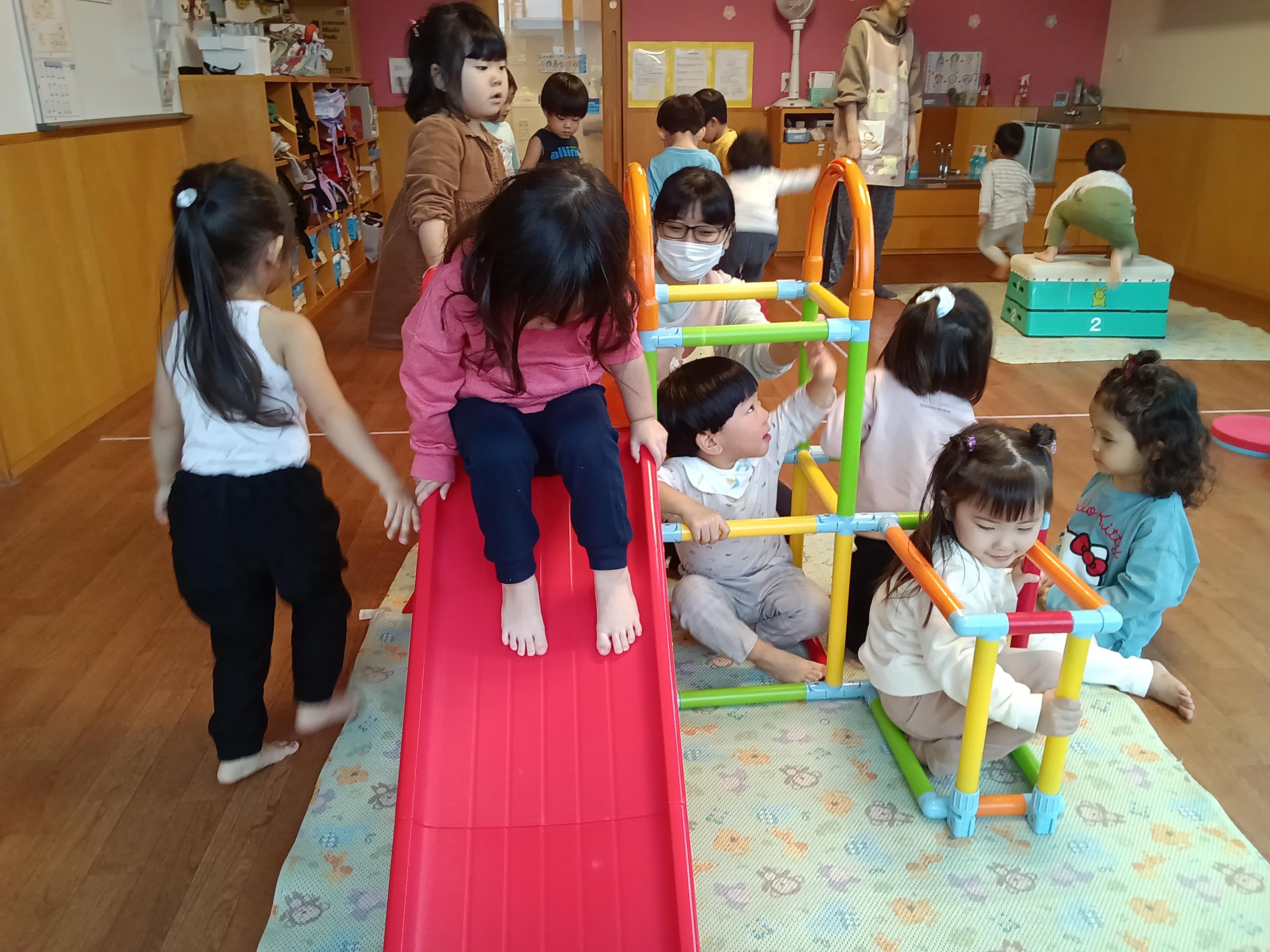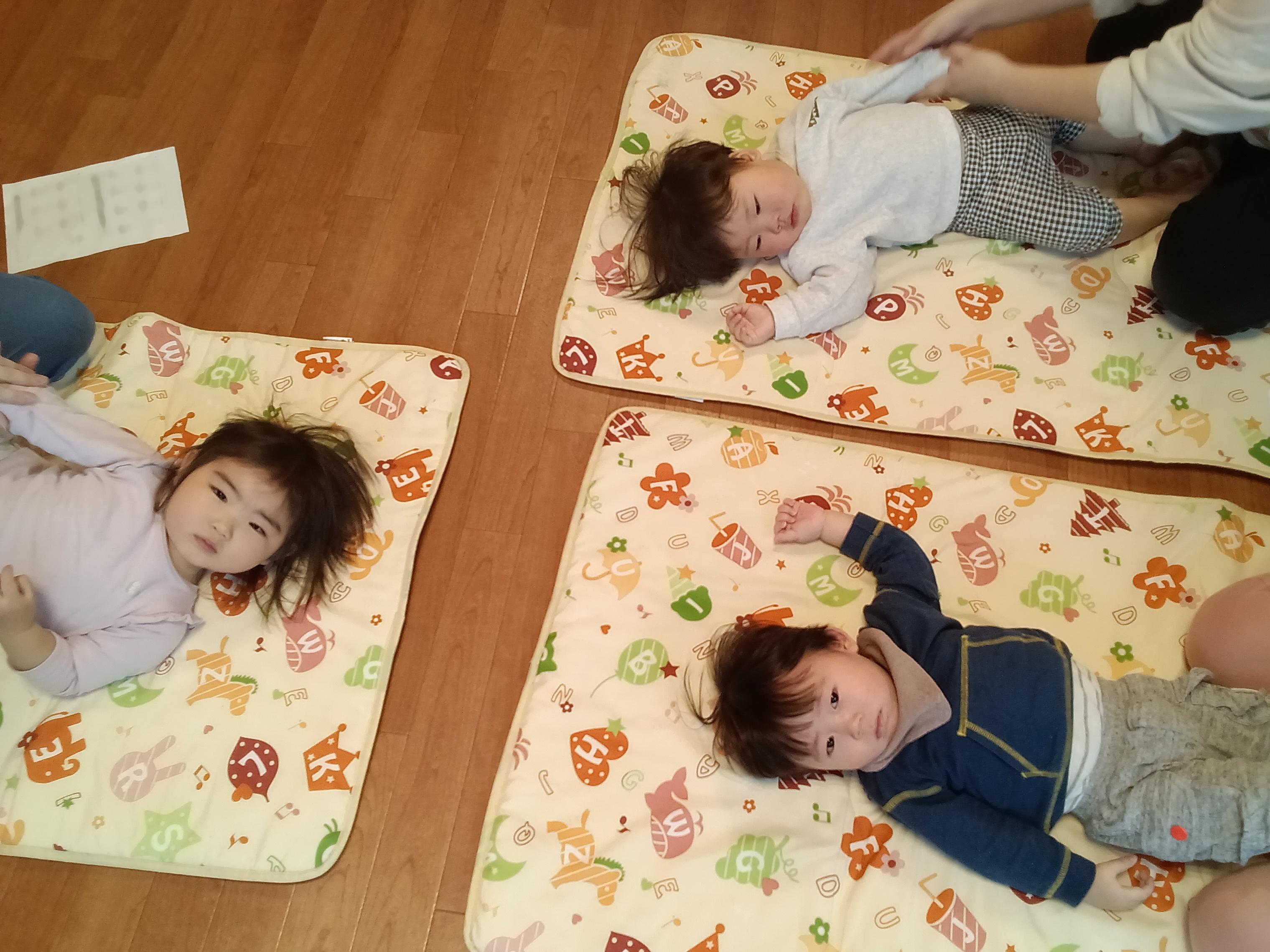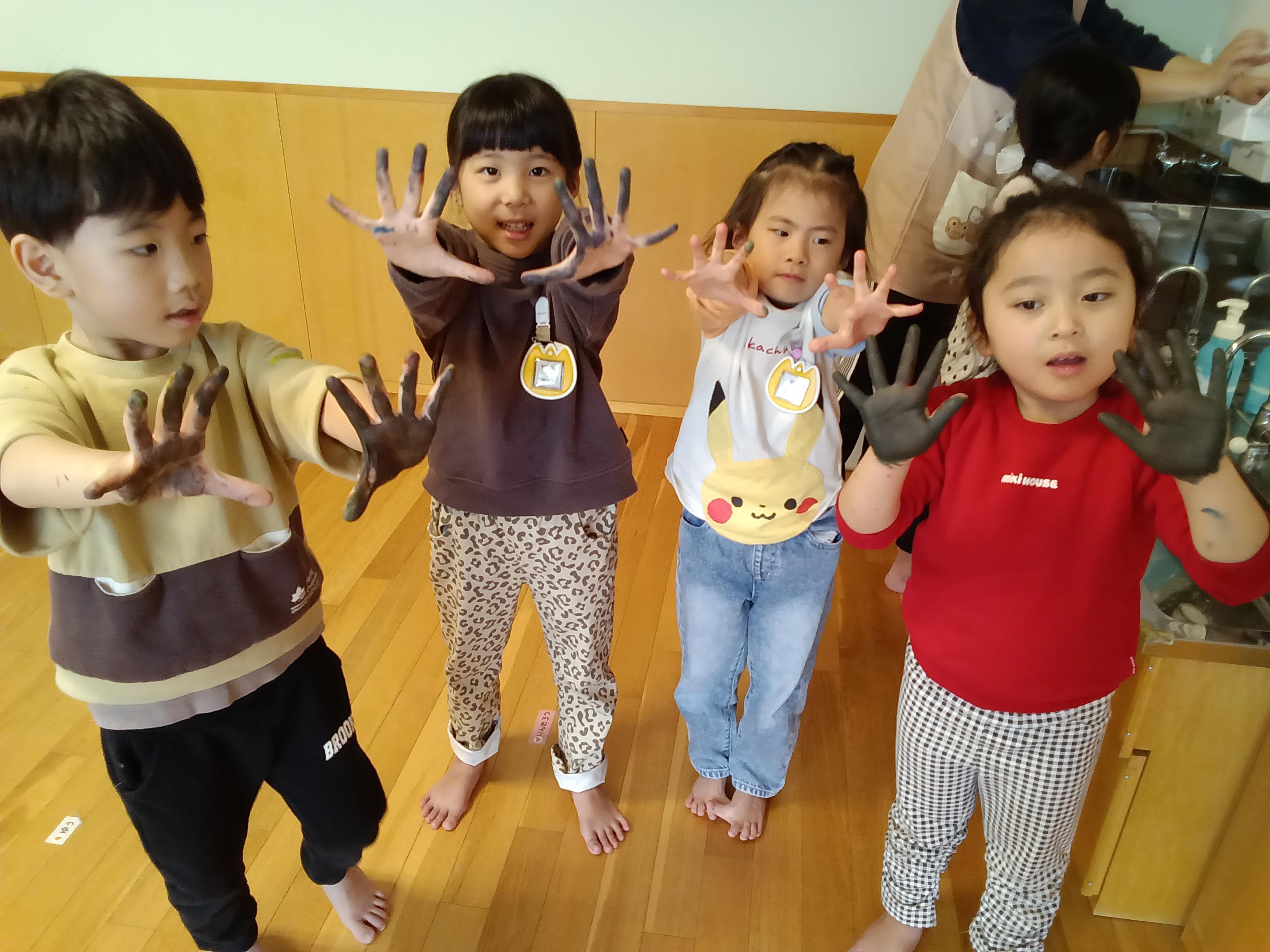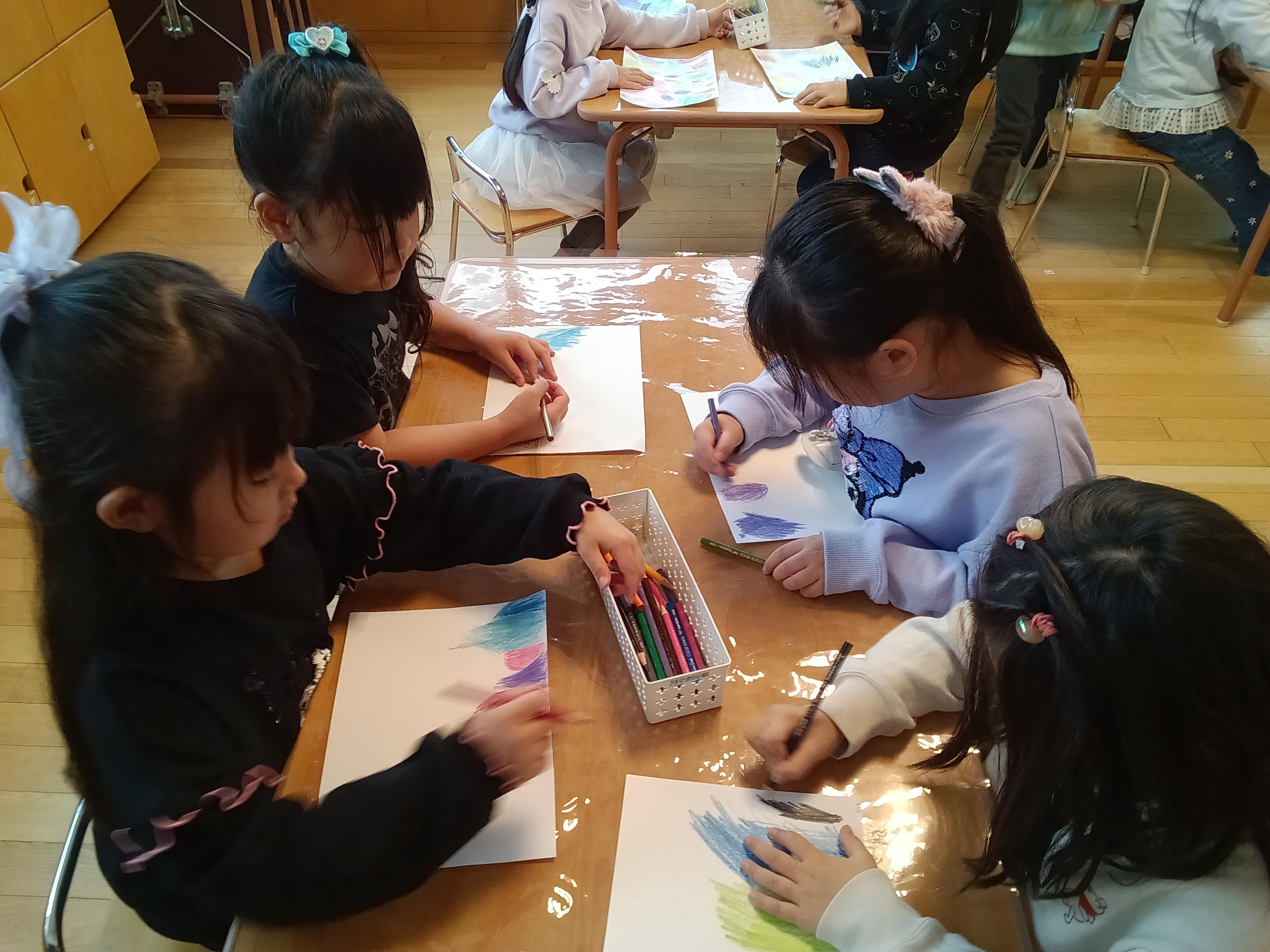 11月6日(水) 勤労感謝の日の制作の様子です🌼好きな色を選び手形スタンプをした後は、絵の具をもっとやりたい!というリクエストで急遽大きな画用紙に指スタンプで絵を描きました🌈ホールで「いろはにこんぺいとう」をして体も動かしました。