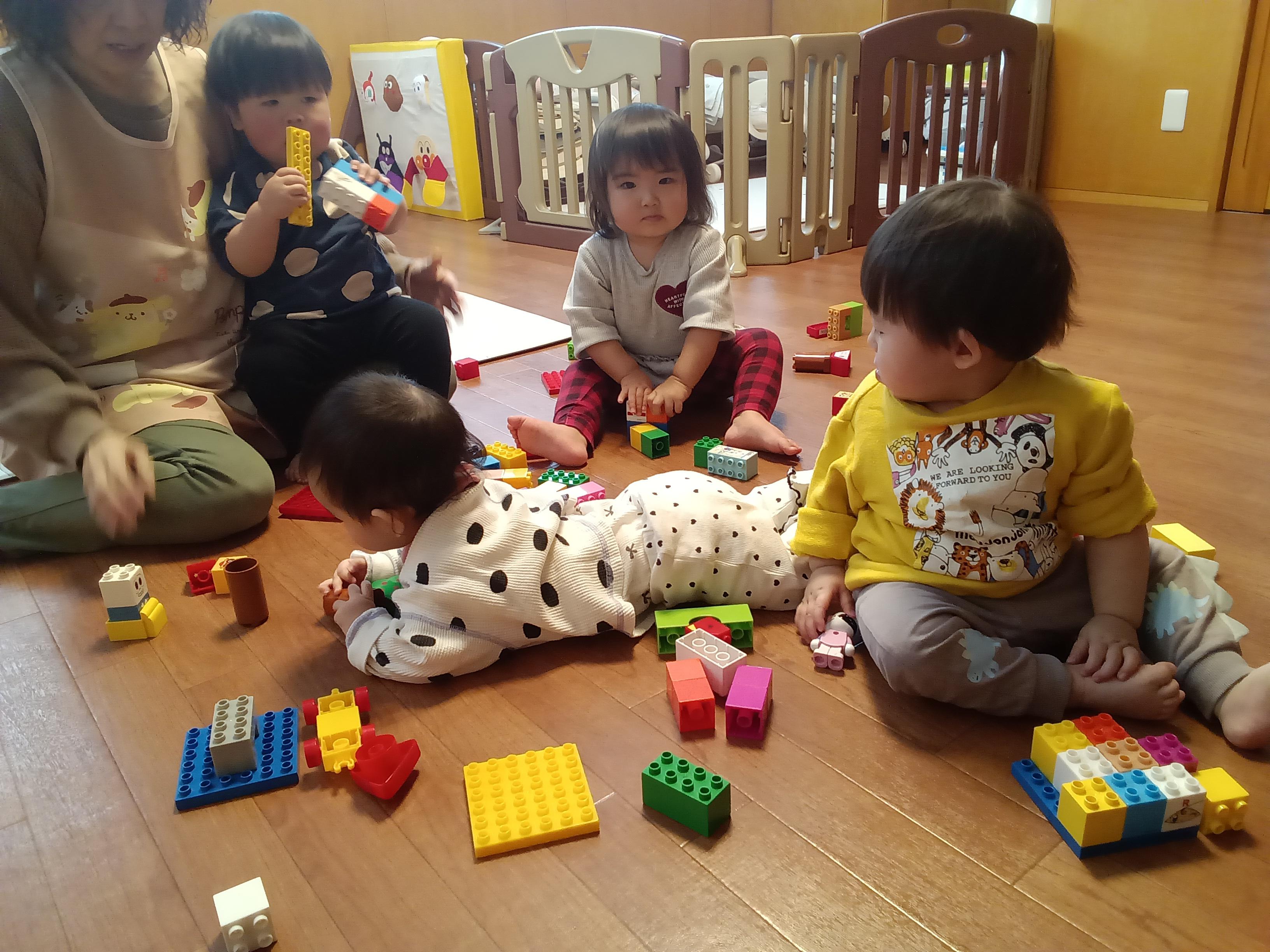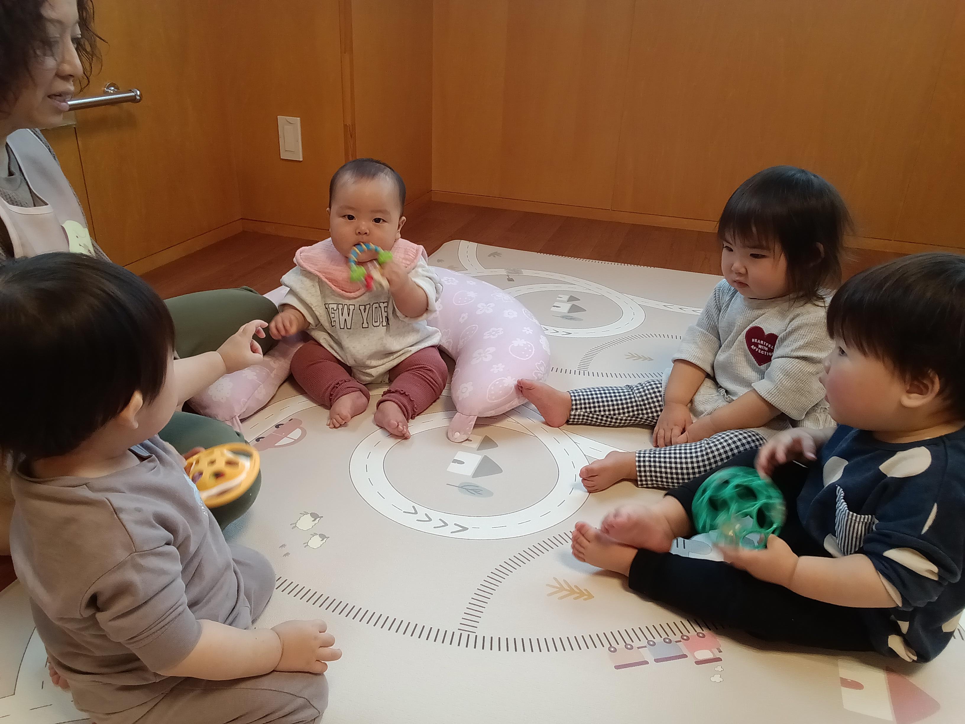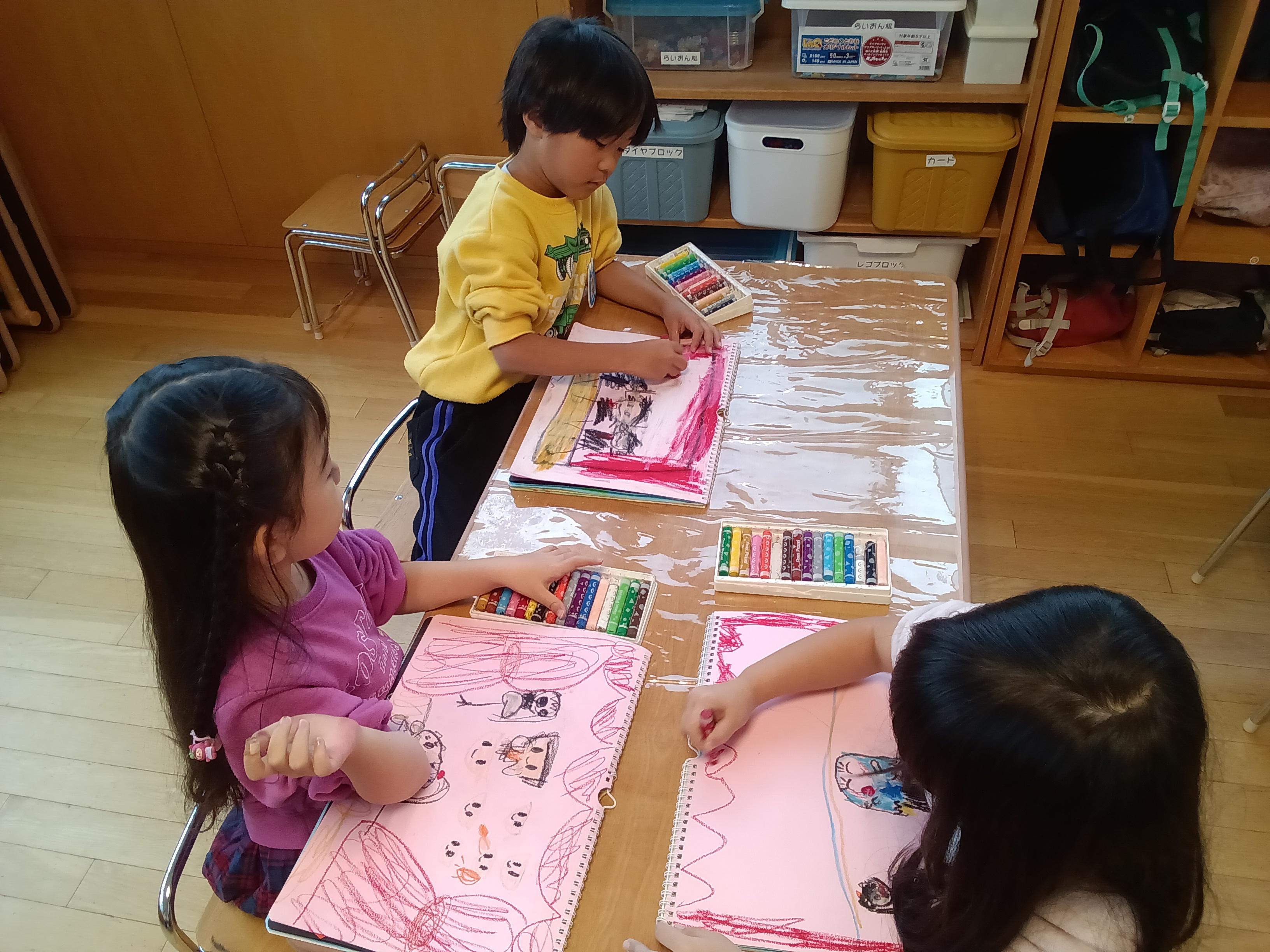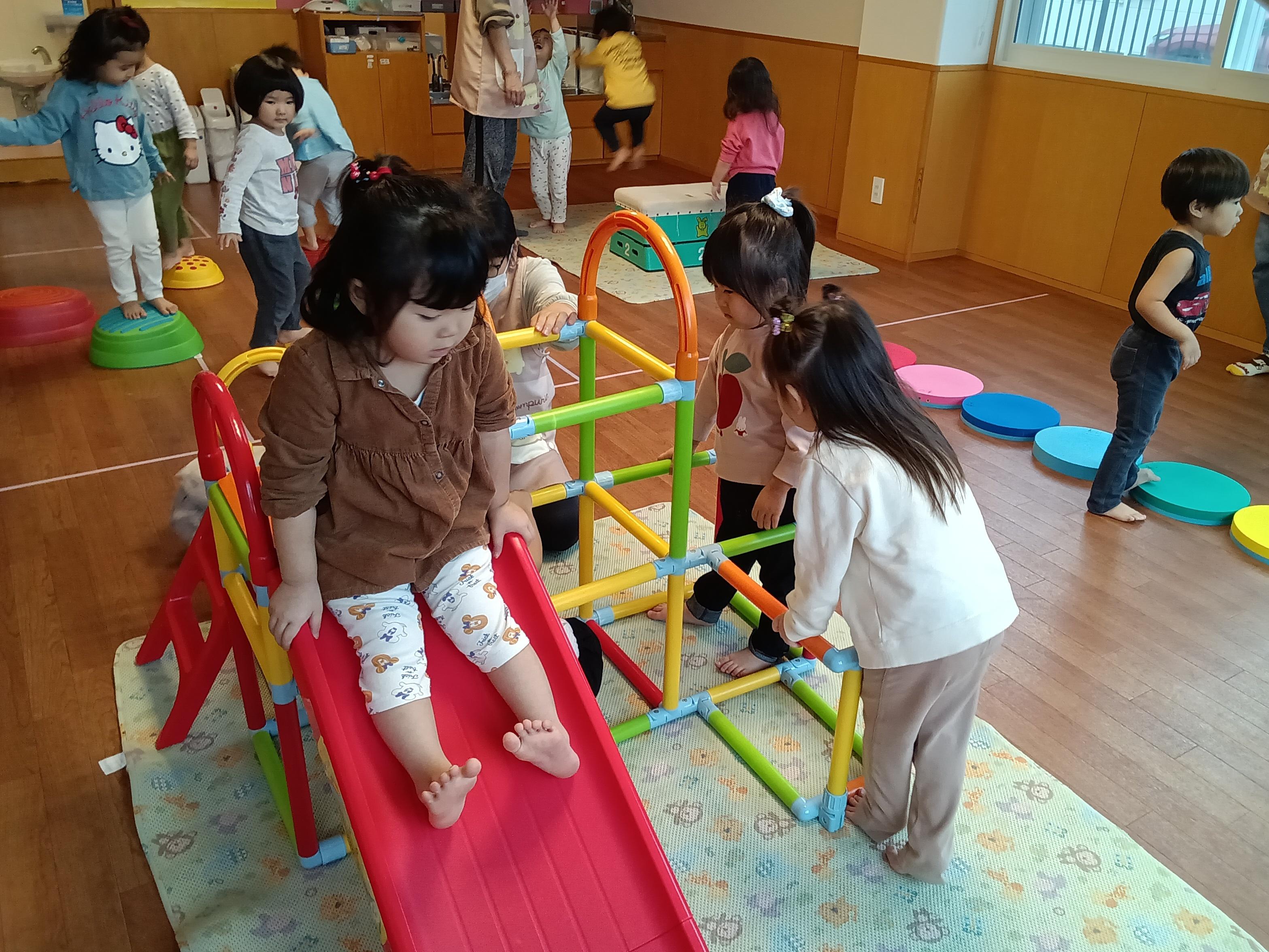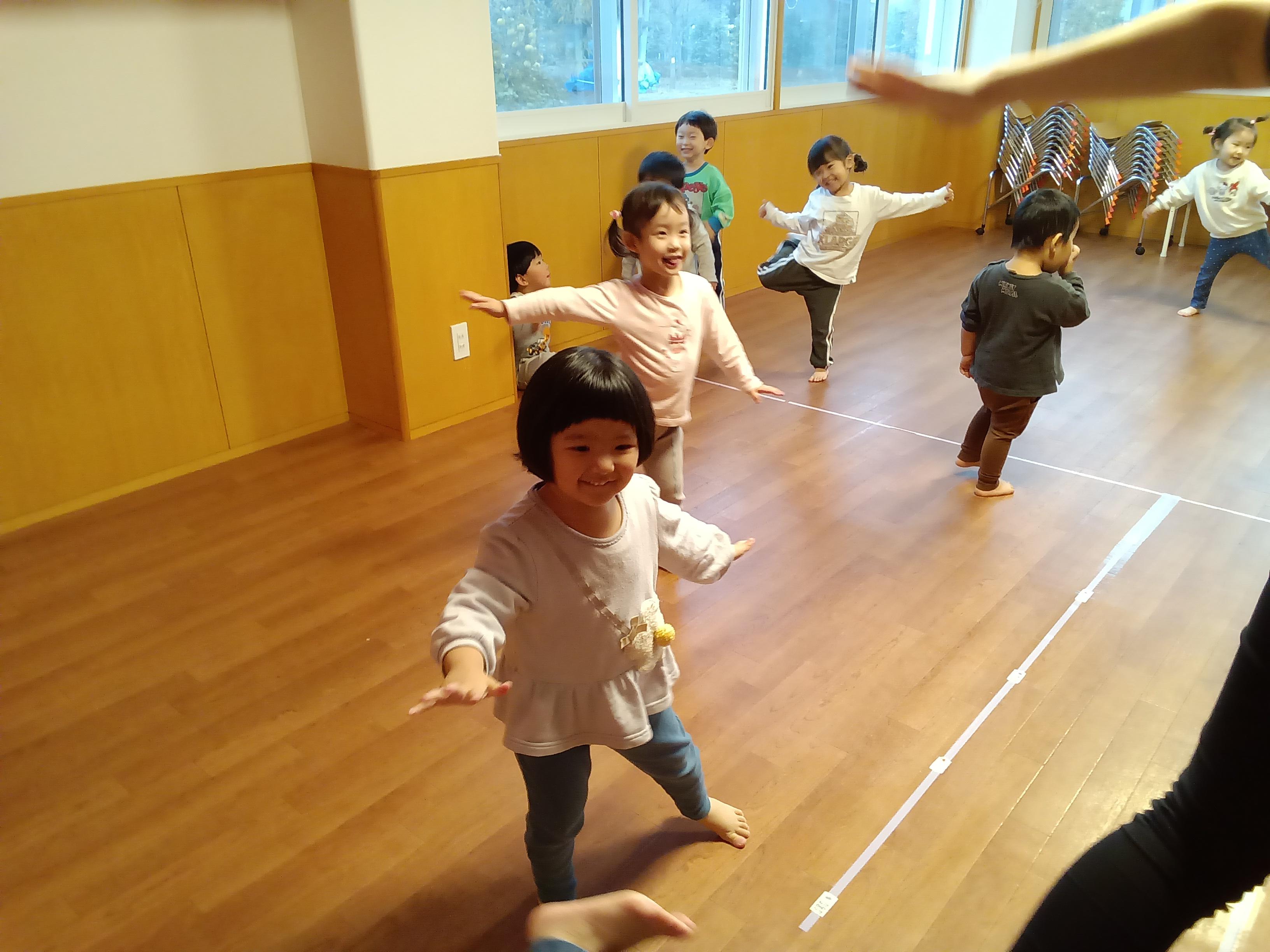 11月6日(水) 勤労感謝の日の制作の様子です🌼好きな色を選び手形スタンプをした後は、絵の具をもっとやりたい!というリクエストで急遽大きな画用紙に指スタンプで絵を描きました🌈ホールで「いろはにこんぺいとう」をして体も動かしました。