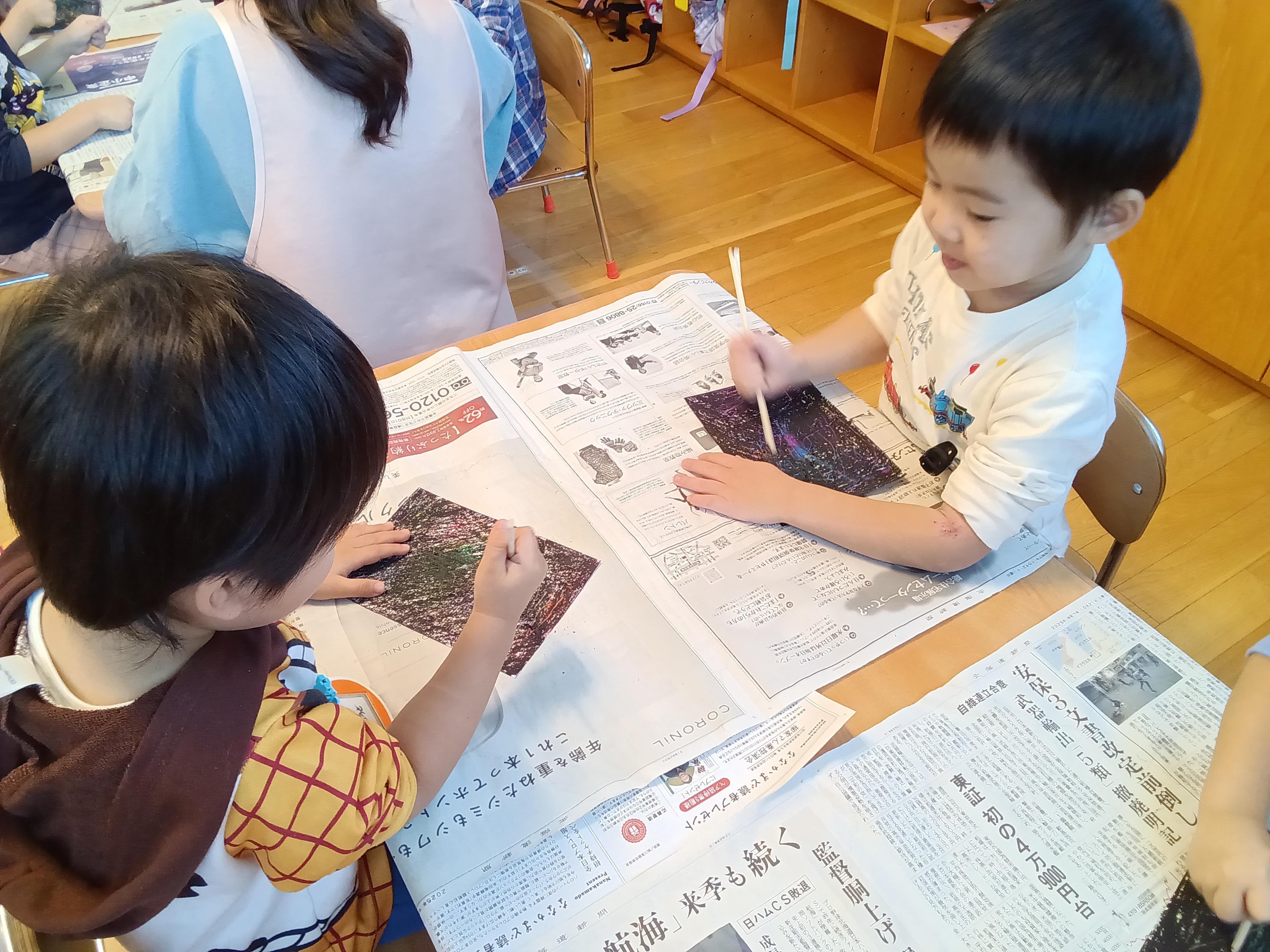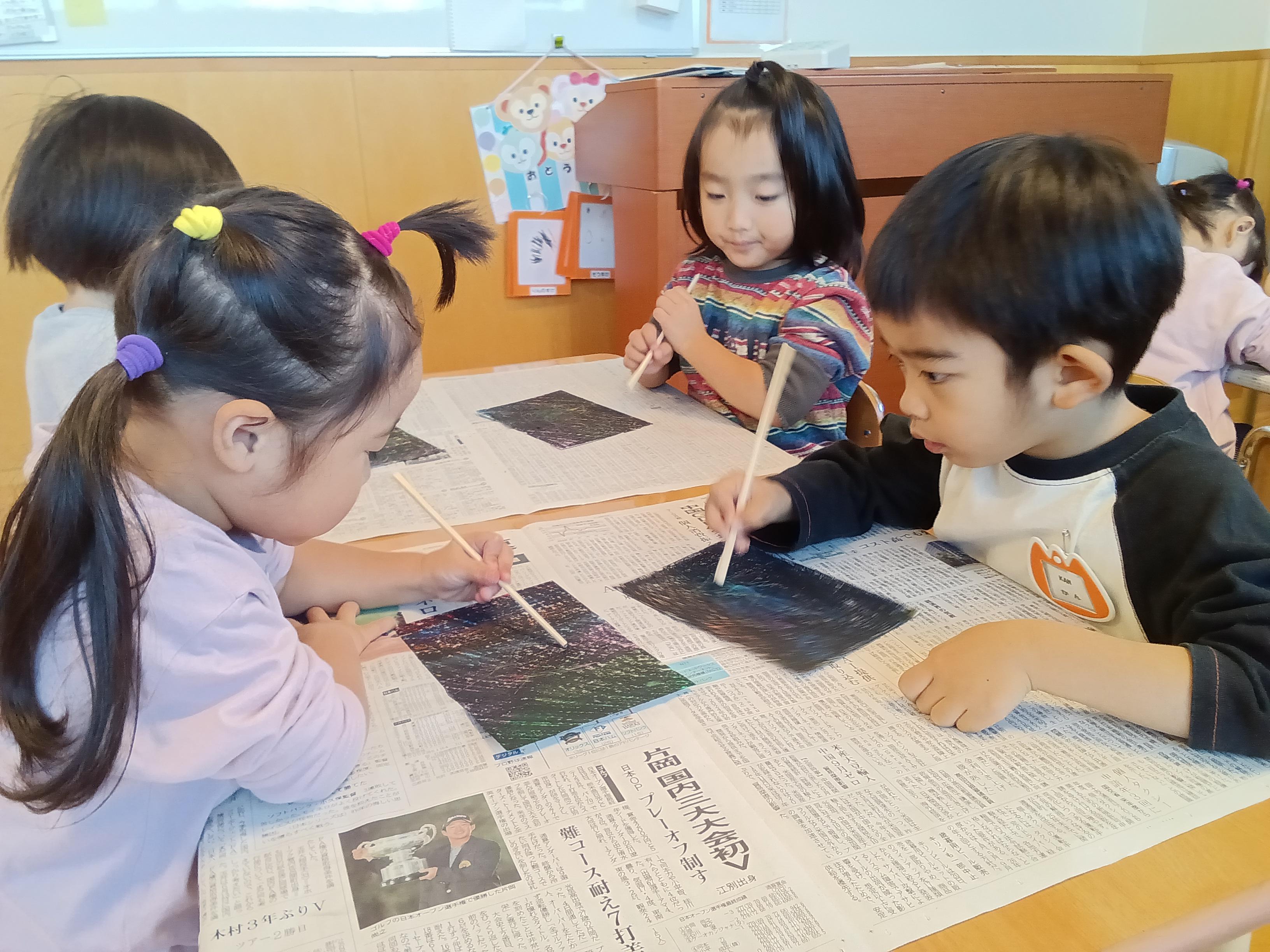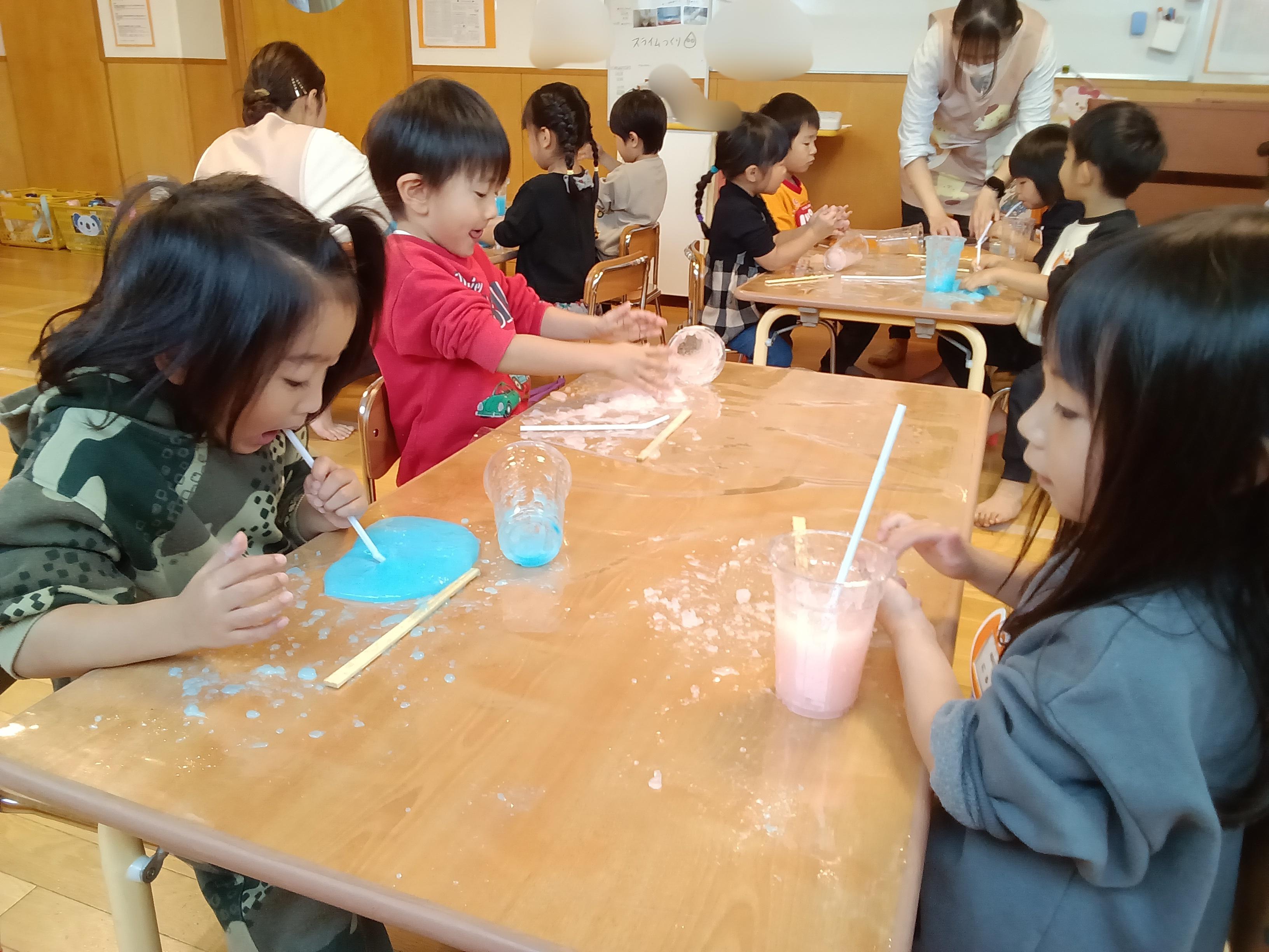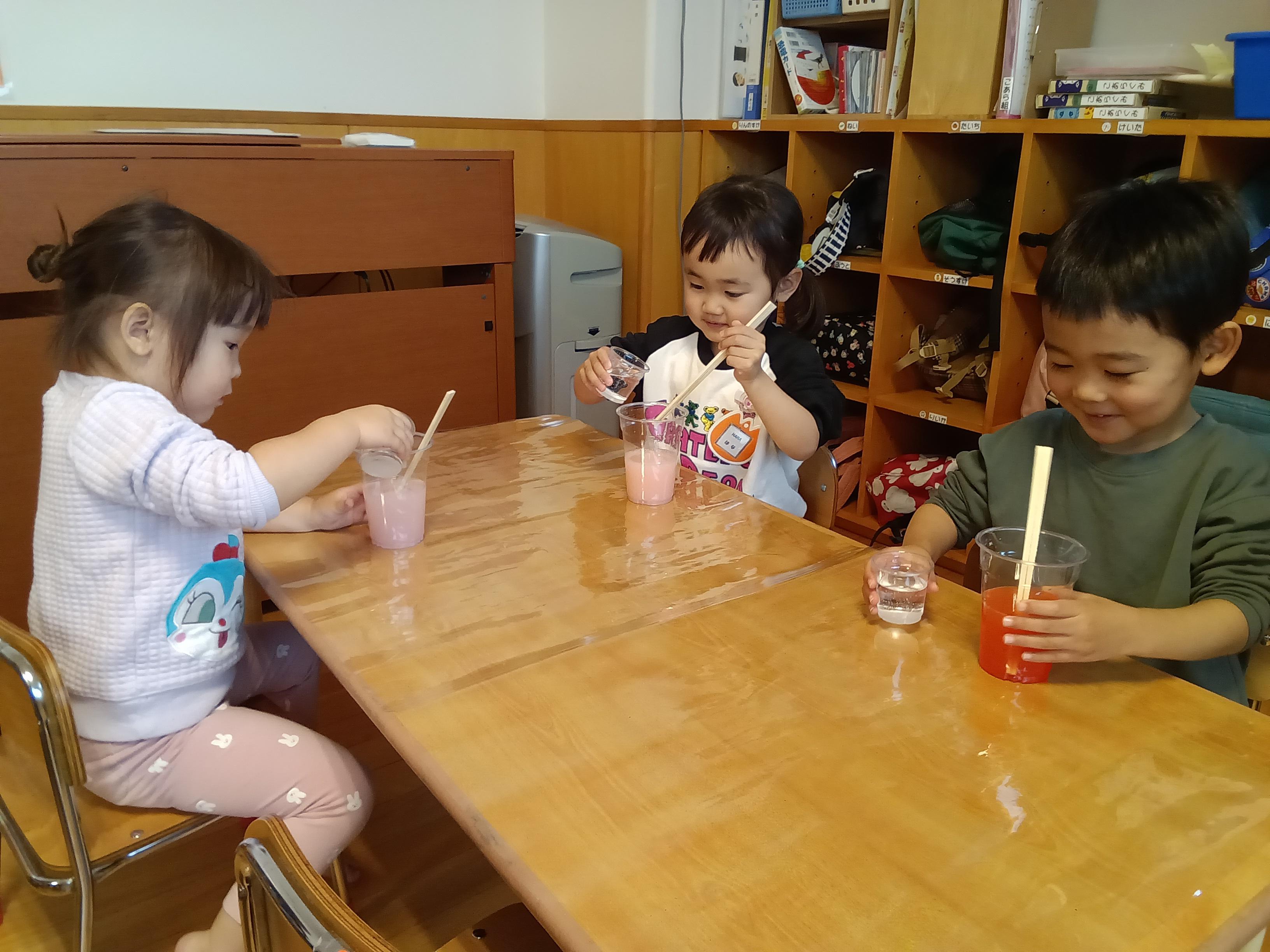 11月6日(水) 勤労感謝の日の制作の様子です🌼好きな色を選び手形スタンプをした後は、絵の具をもっとやりたい!というリクエストで急遽大きな画用紙に指スタンプで絵を描きました🌈ホールで「いろはにこんぺいとう」をして体も動かしました。