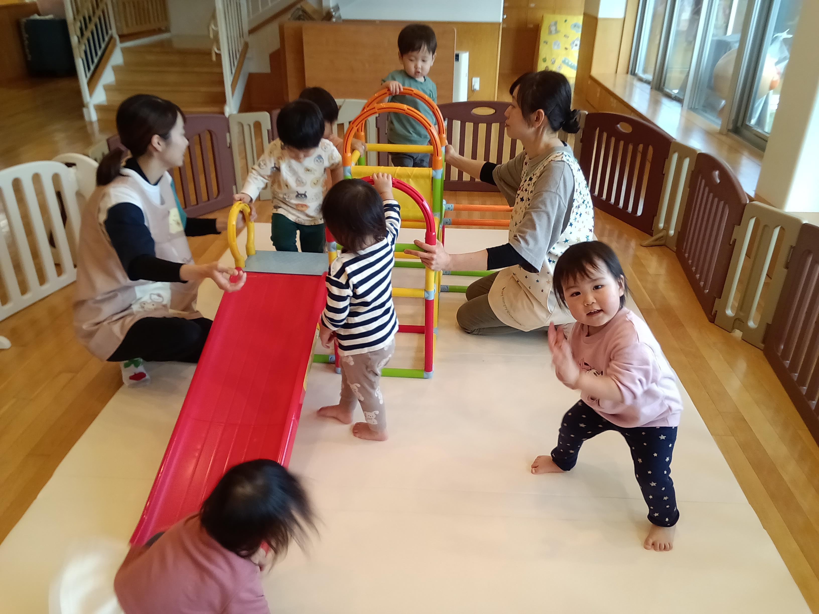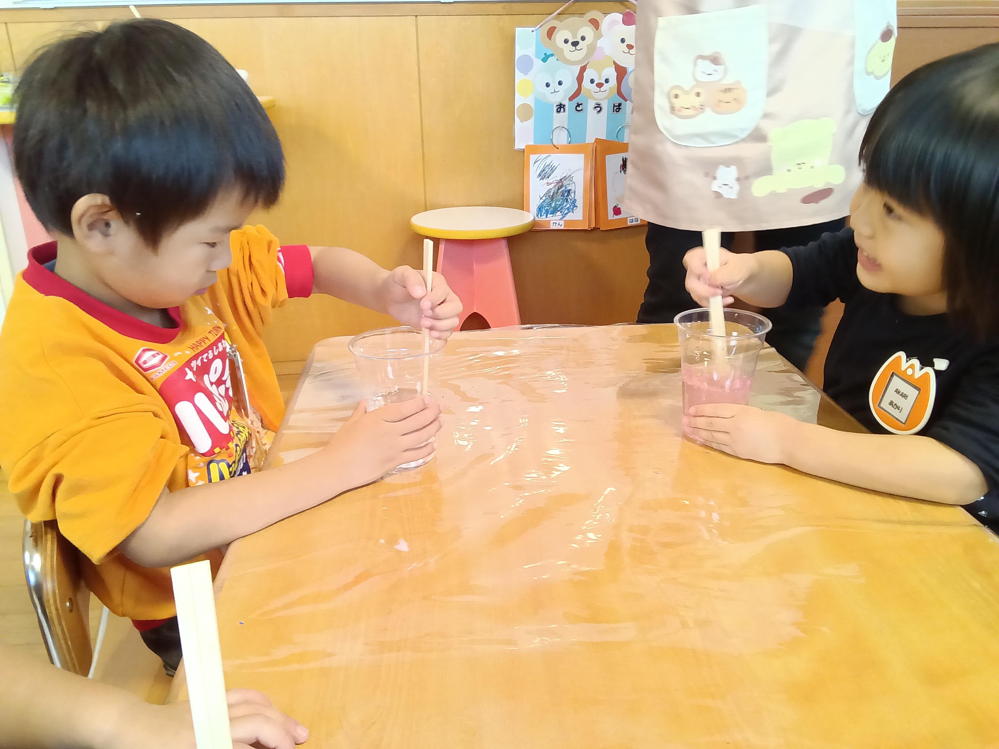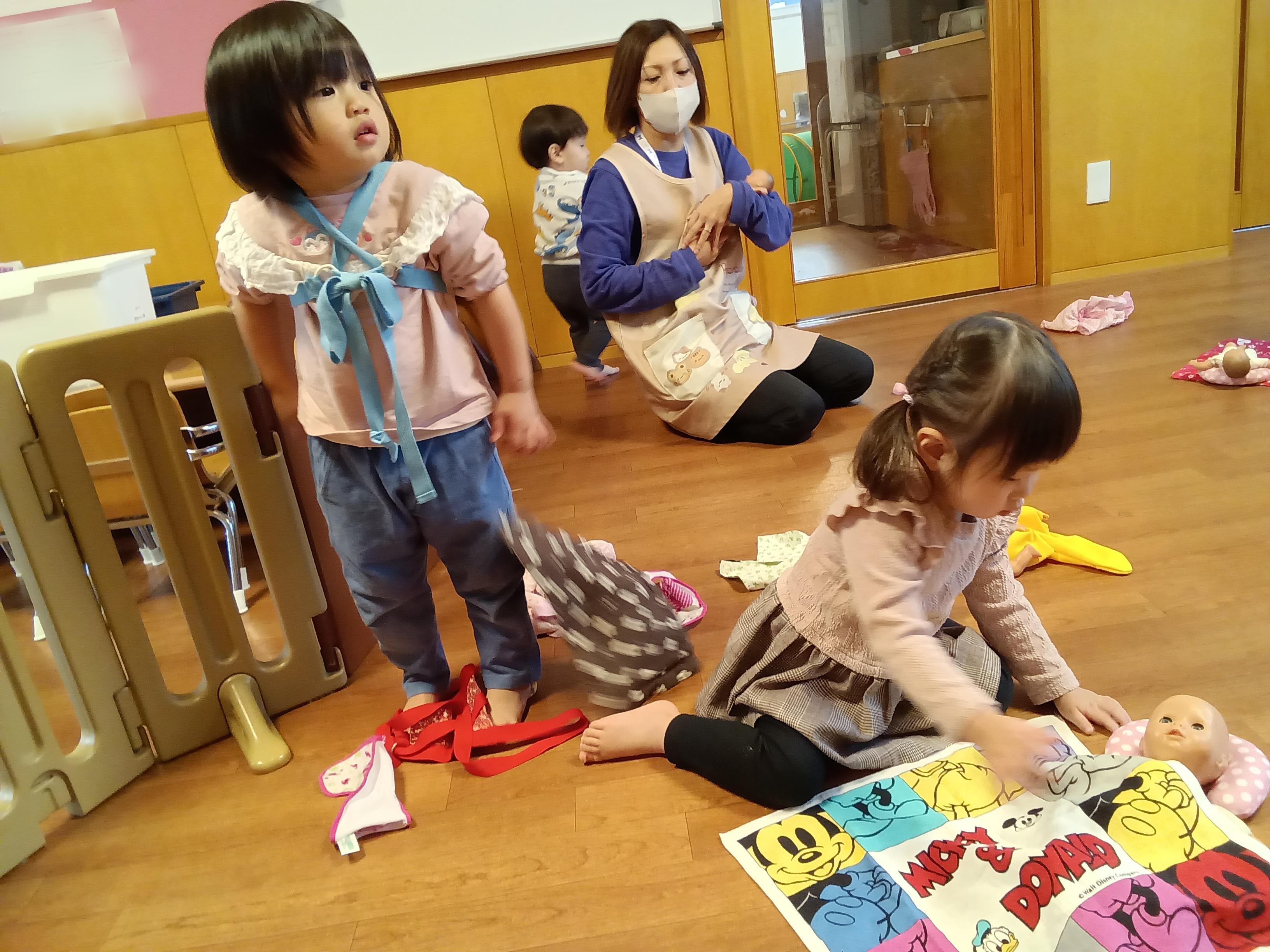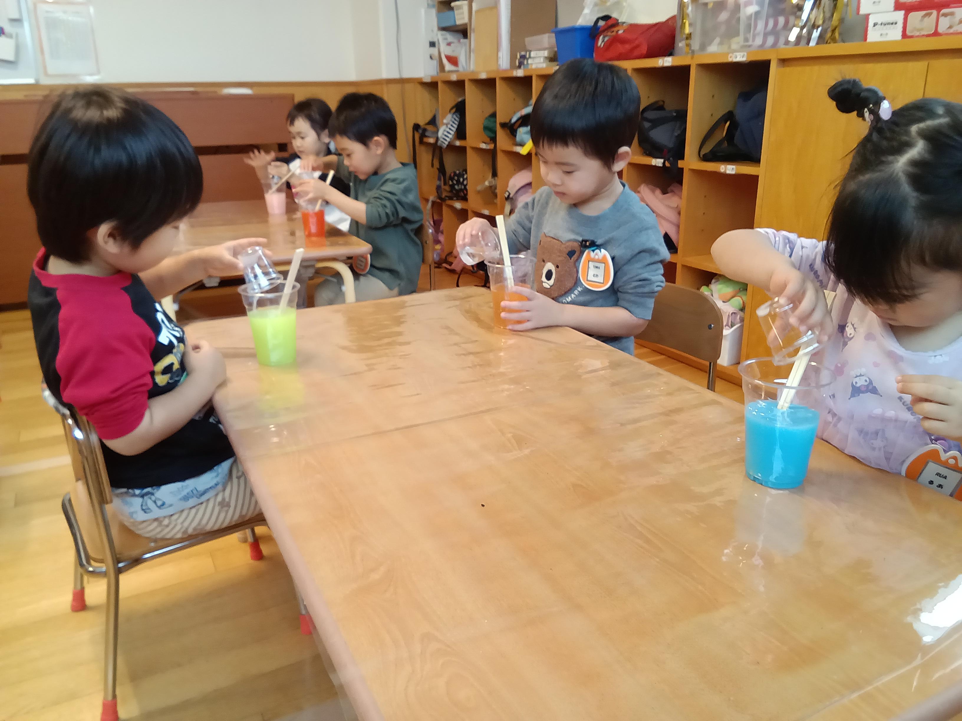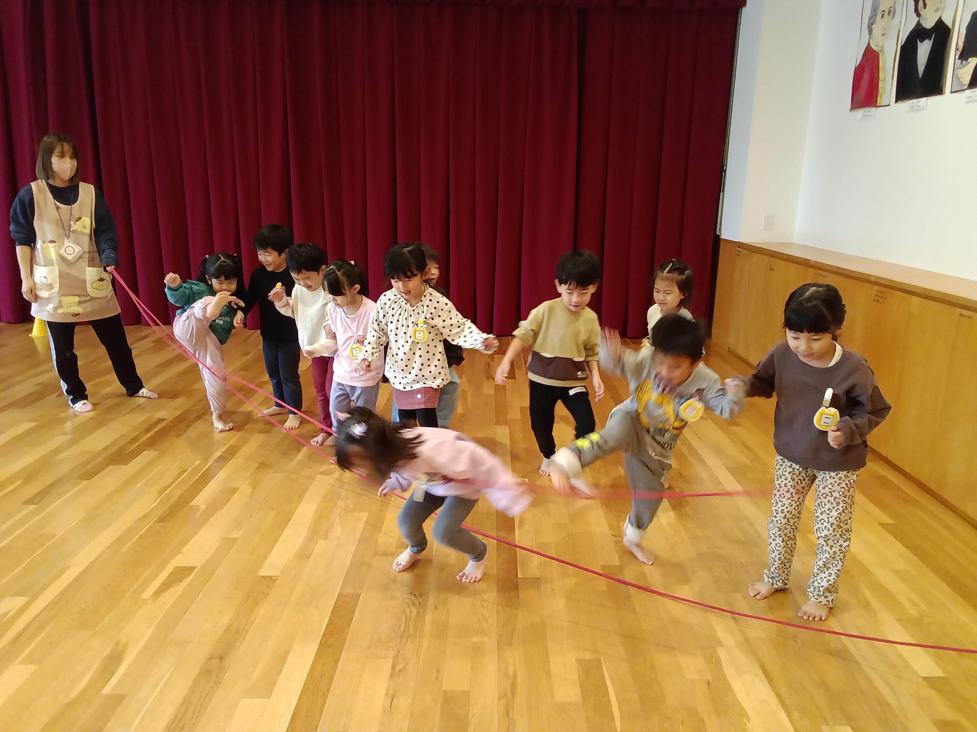 11月6日(水) 勤労感謝の日の制作の様子です🌼好きな色を選び手形スタンプをした後は、絵の具をもっとやりたい!というリクエストで急遽大きな画用紙に指スタンプで絵を描きました🌈ホールで「いろはにこんぺいとう」をして体も動かしました。
