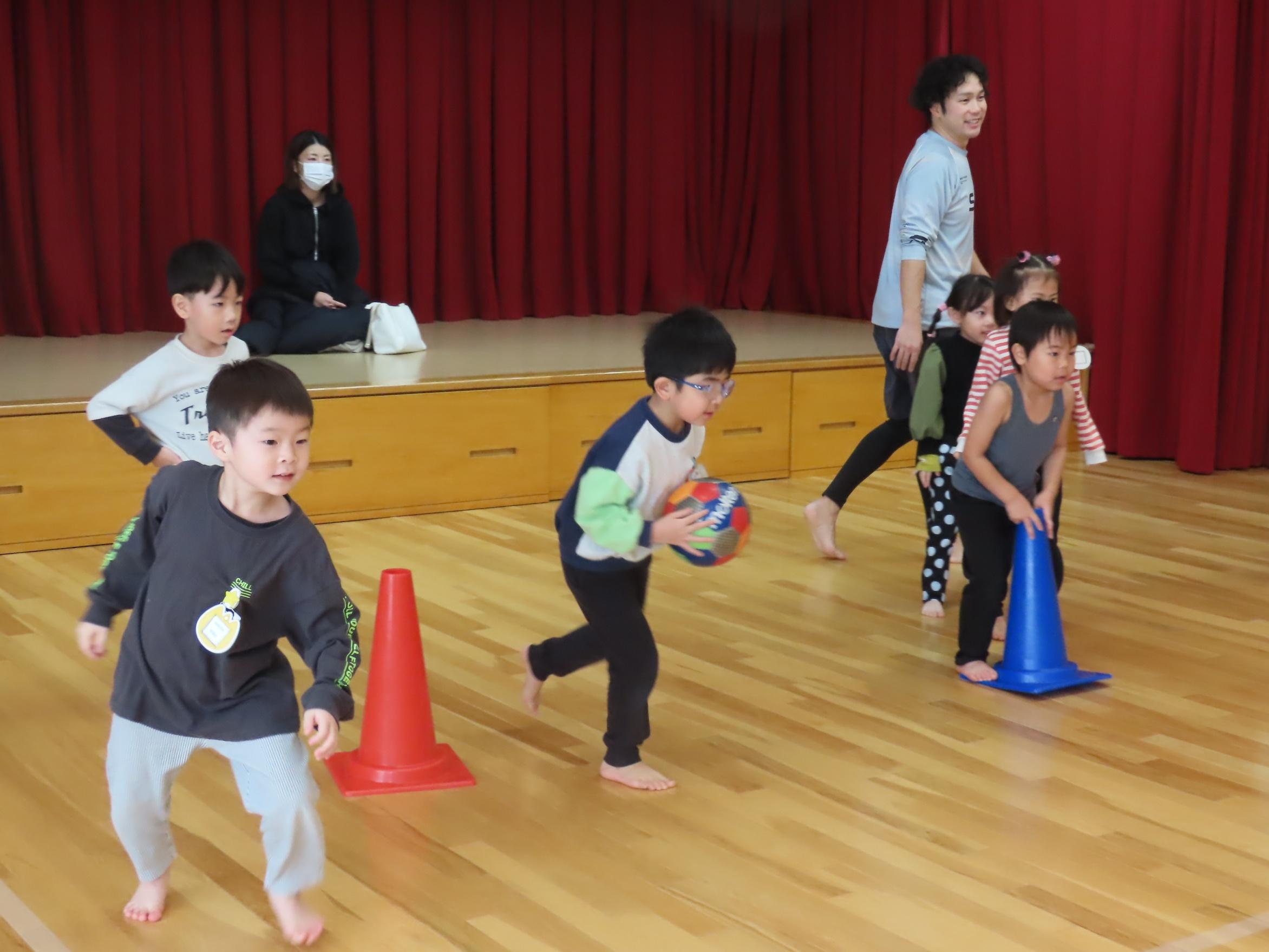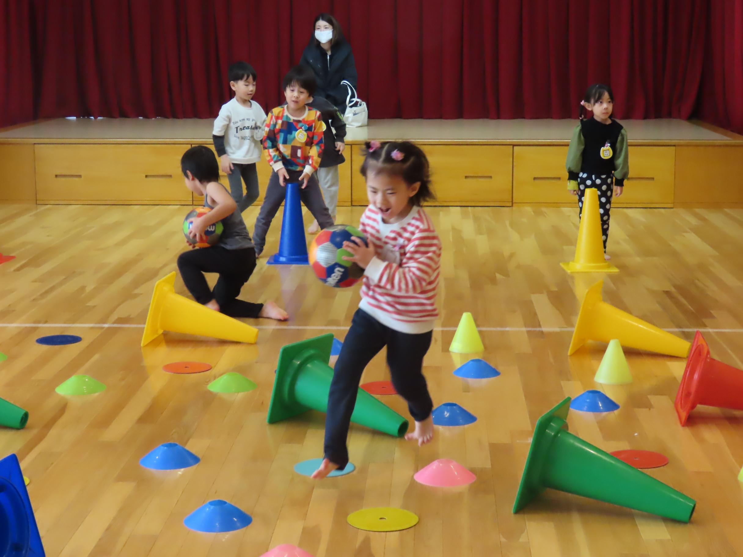 12月12日(金) 今日はリーフラススポーツスクールでした🎵遠くに飛ばすときにはボールをよく見る、お話聞くときには話している人の目を見るなど“よく見る”ということをコーチから教えてもらいメリハリをつけて取り組んだ子ども達です✨最後のサッカーではボールを一生懸命に追いかけ試合を楽しんだきりん組です💕