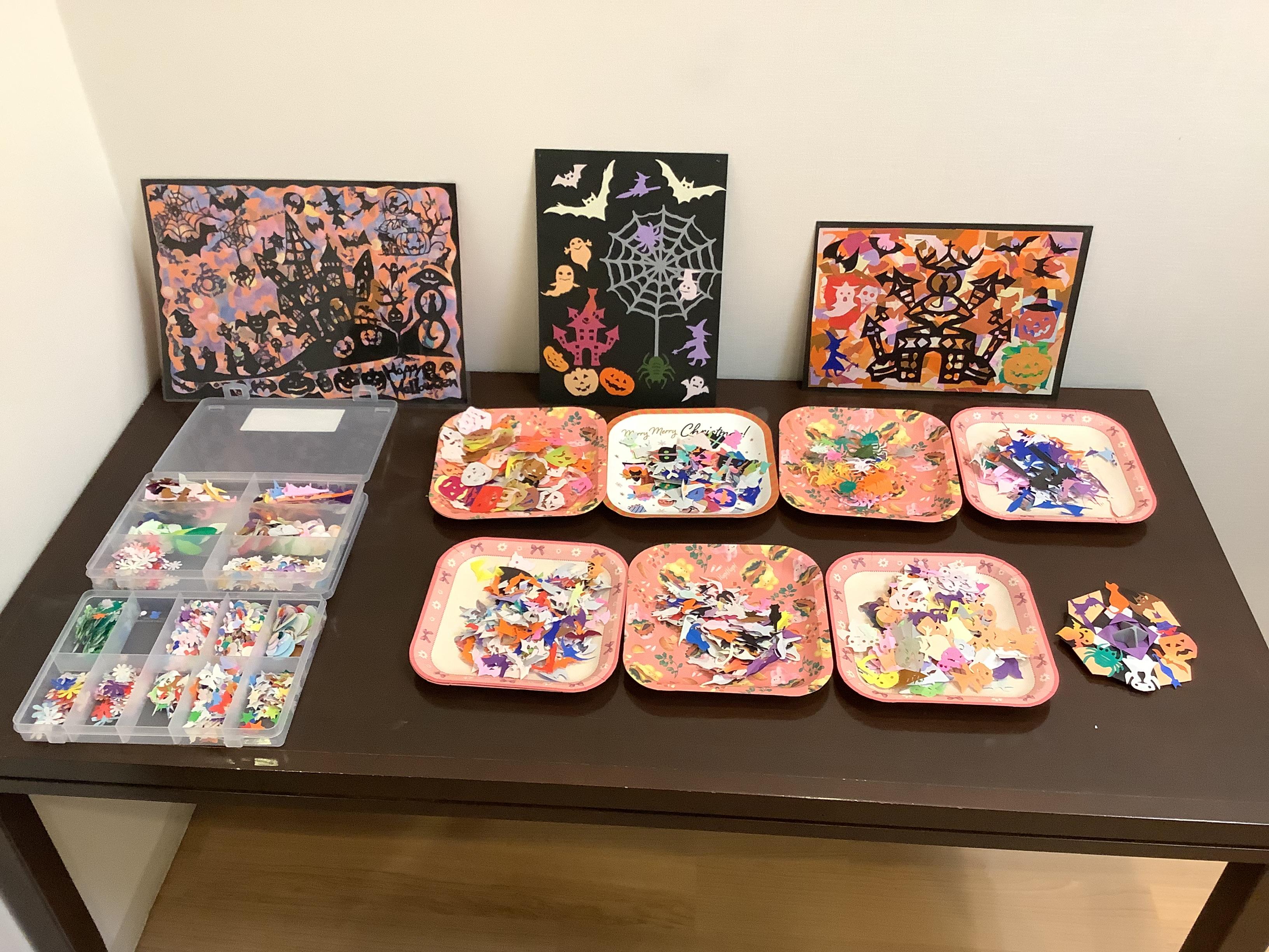 10月の「きりがみ&きりくずアート」は、「ハロウィーンの世界を思いっきりきりがみアートしよう!」でした。