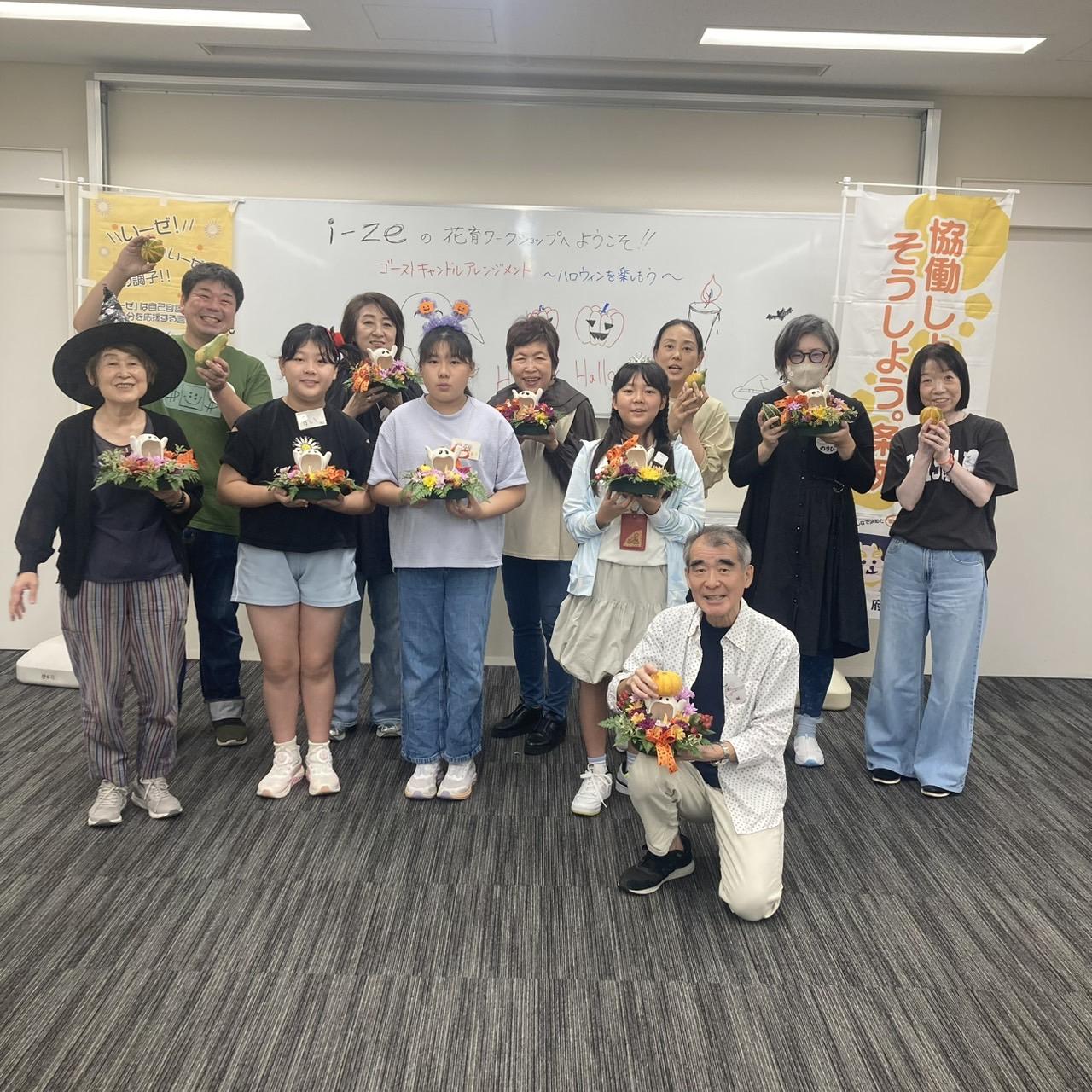 10月三連休中日のi−ze(いーぜ)の花育ワークショップでは、ハロウィンのかわいいアレンジメントを作りました。