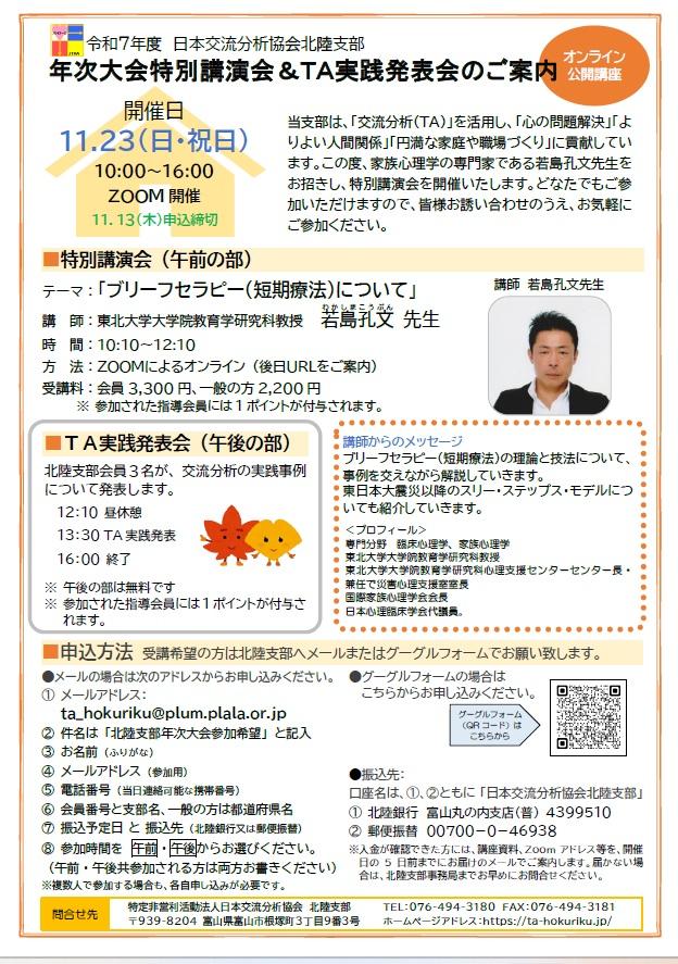 この“新中部”は、単なるエリアの拡大ではありません。私たち一人ひとりのつながりを大切にし、交流分析(TA)の学びをより深く、より広く届けていくための新しい挑戦でもあります。