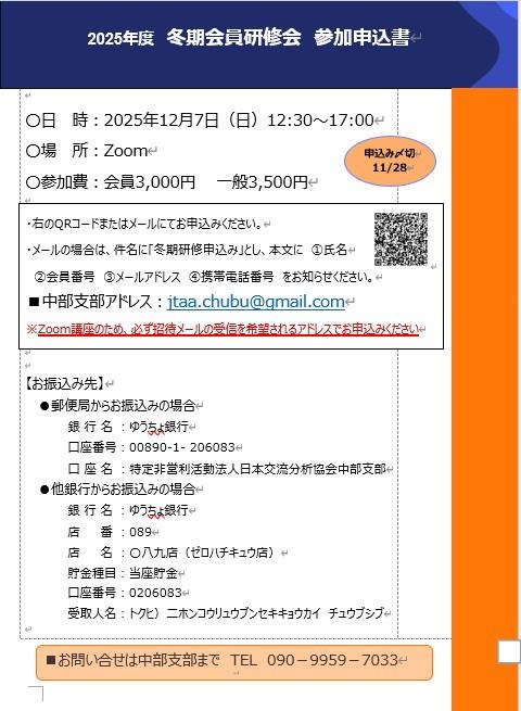 情報はホームページ等でもご覧いただけます。また、ご意見・ご質問・ご相談等多少に関わらず中部支部事務局へご連絡・お問合せをお願い致します。なお、電話には出られない場合がありますので、出来るだけメールにてお問合せいただければ幸いです。