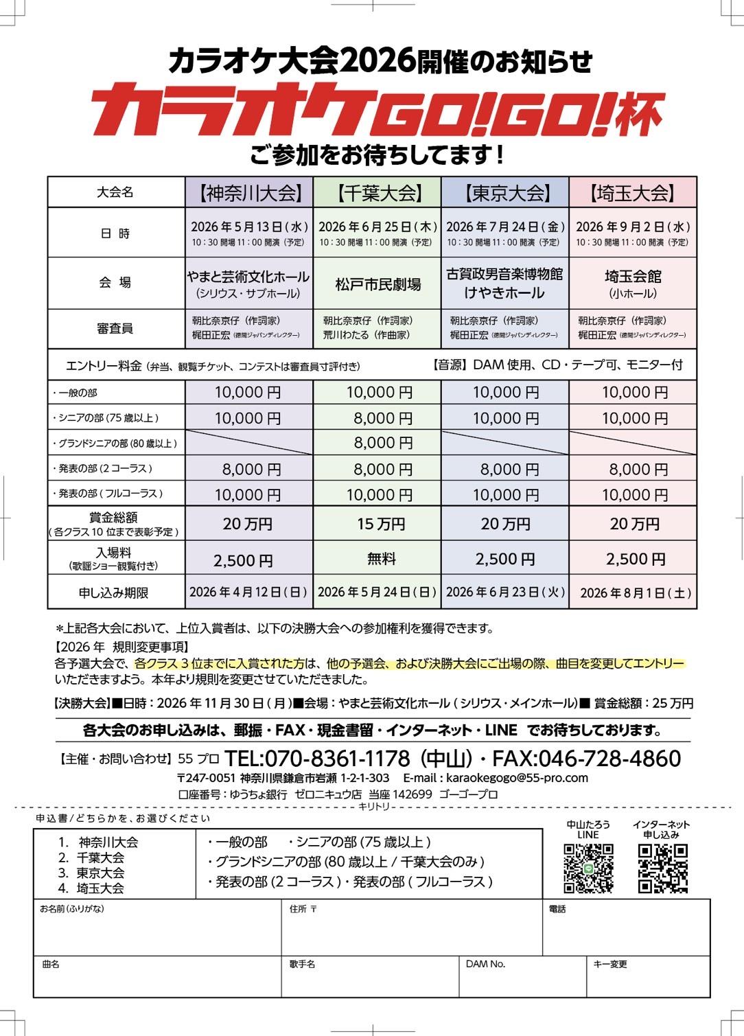 出場:2コーラス7000円 フルコーラス9000円 デュエット10000円