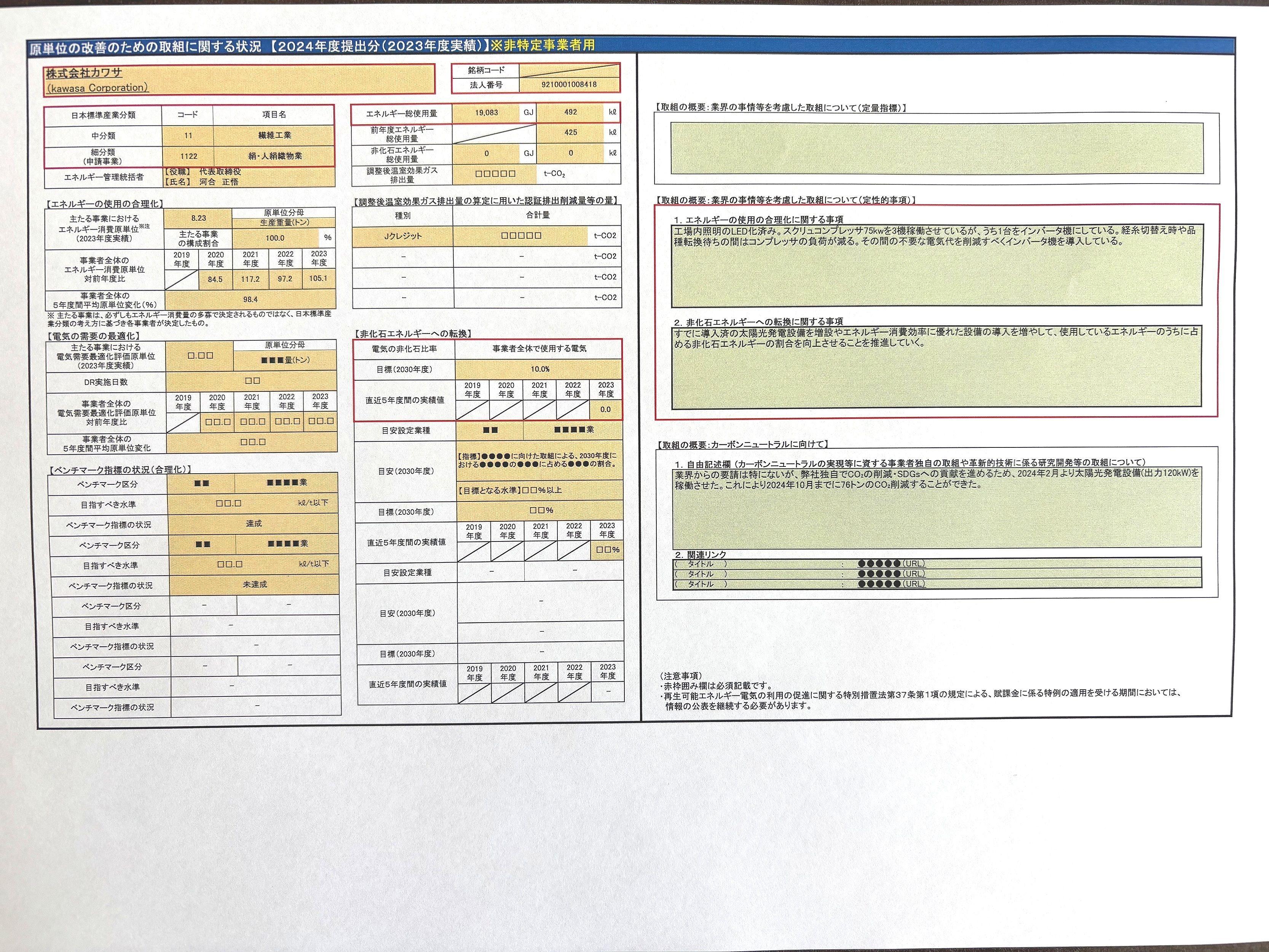 原単位の改善のための取り組みに関する状況(2024年度提出分)