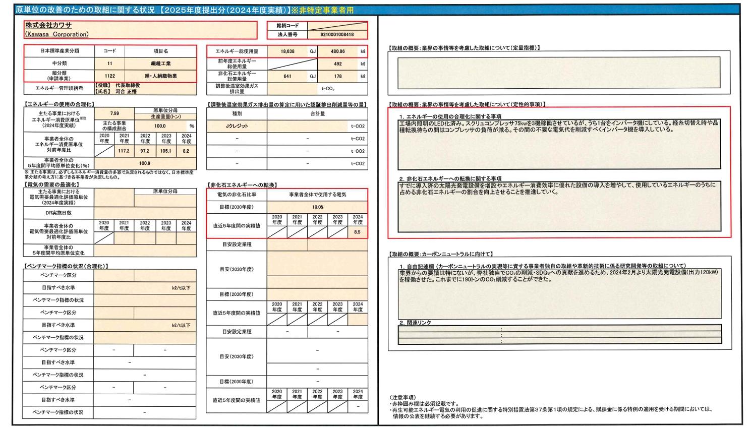 原単位の改善のための取り組みに関する状況(2025年度提出分)