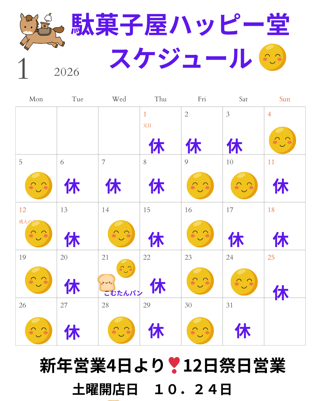 日曜・祝日は、不定期です