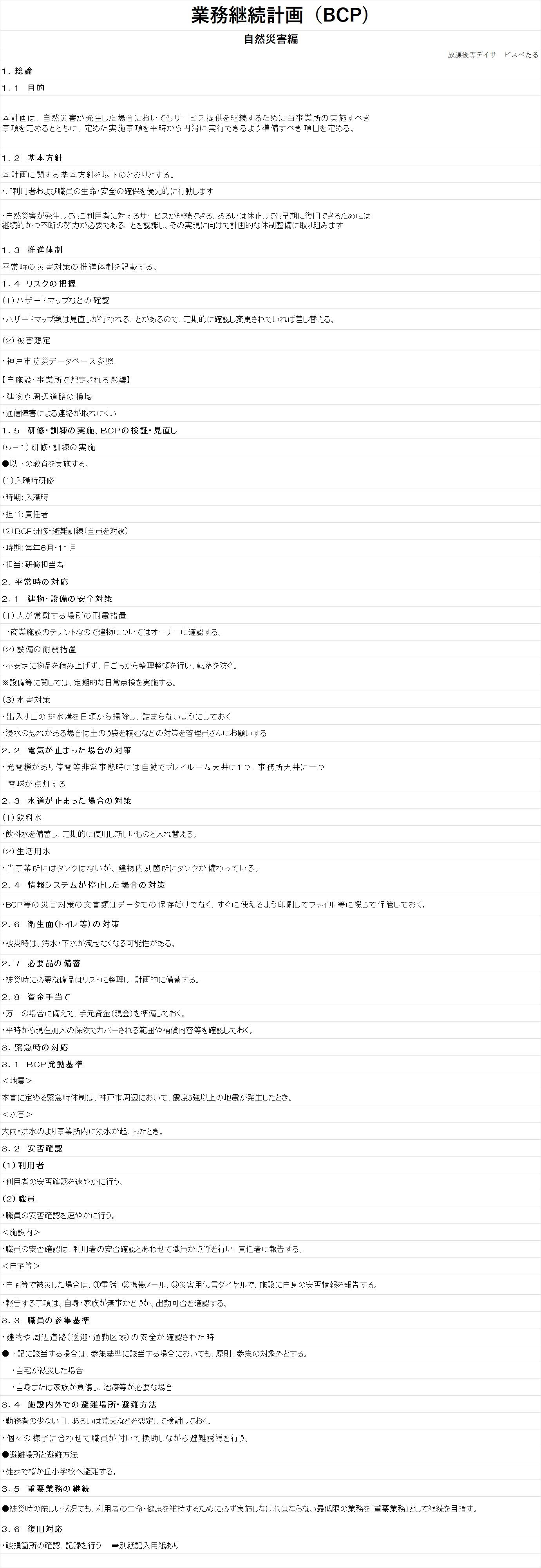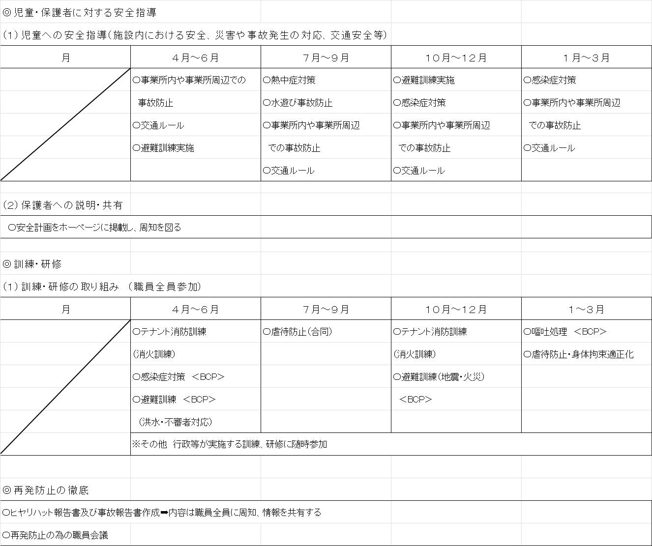 ・事業所は、非常災害に関する具体的計画を立てておくとともに、非常災害に備える為、定期的に避難、救出その他必要な訓練を行います。