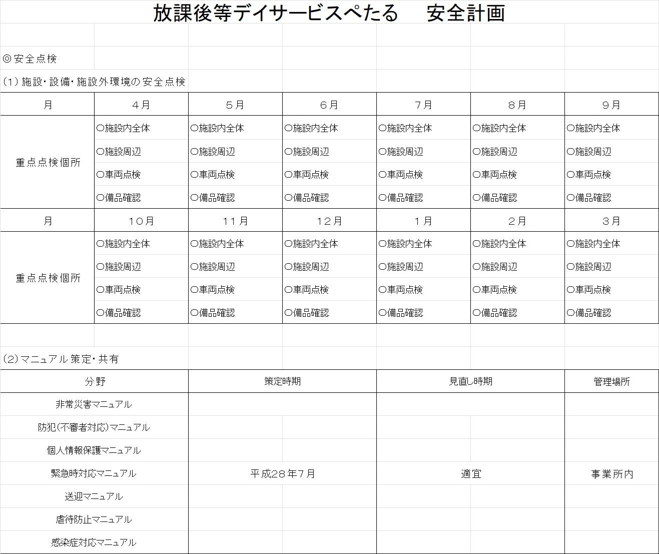 ・保護者様及び児童に対して、運営規程の概要、勤務体制、その他重要事項を記した文書を交付して説明を行います。